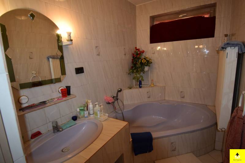 Bükön központi helyen, mégis csendes környezetben, kiváló szerkezeti állapotú 150 m2-es ikerház, 250 m2-es telekkel eladó.• A családi ház szuterén részén (ami telek adottsága miatt inkább nevezhető földszintnek) helyezkedik el egy lakószoba, egy fürdőszoba, egy wc, egy tároló, egy garázs és egy kazánház. Ezen a szinten a belmagasság normál méretű, valójában egy lakószintnek felel meg.• A ház földszinti részén (ami inkább magasföldszint) található egy tágas konyha étkezővel, 3 szoba, egy közlekedő, egy kamra egy fürdőszoba és egy wc, valamint a bejáratnál egy félig fedett terasz.• A felső szint jelenleg szerkezetkész állapotú. A villanyvezetékek, víz- és csatornahálózat kiépítése megtörtént.Az ingatlan több generáció zavartalan együttélésére megfelelő, de elhelyezkedéséből adódóan, akár üzleti tevékenység folytatására is kiválóan alkalmas.