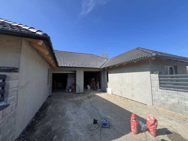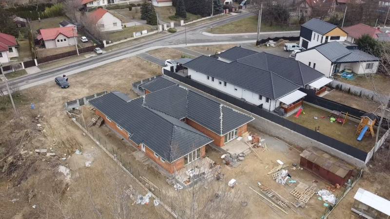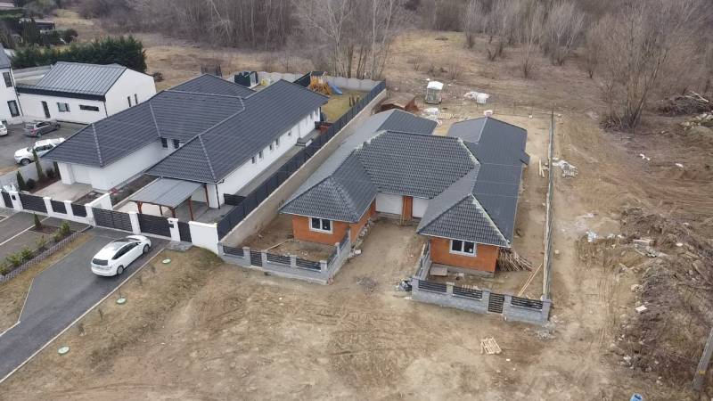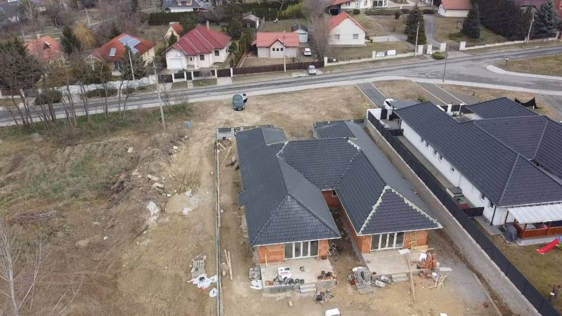 Veresegyházon kínálunk eladásra 1 db ikerház felet. Várható elkészülés 2025 vége.Szemből nézve a bal ikerfél van meg, szerződés után 2 hónapon belül kész.MŰSZAKI TARTALOM(az alapár tartalmazza)Tartószerkezet-vasbeton sávalap alapozás-lábazati falak - változó magasságú zsalukő 2 irányú vasalással-Szerelőbeton - 10 cm C 20625-16 kk-külső és teherhordó falak - POROTHERM N+F 30-áthidalók - PTH áthidalók km. tömör tégla felfalazással vagy vb. áthidalóval-válaszfalak - 10-es POROTHERM válaszfallap-födém - fafödém-fedélszék: 35 fokos nyeregtető függesztőműves-porhó elleni védelem - átlapolás és erősített pc fólia-Héjalás - TERRÁN ZENITH antracit színben, horg. acéllemez ereszcsatornávalSzigetelések-----talajpára elleni szigetelés - teljes felületen GV4-es lemez ragasztva-falon 10 cm Nikecell szigetelő - színezett keskenyvakolattal-talajon fekvő padlón - 2 x 4 cm lépésálló PS hab, esztrichezés-lábazaton - 8 cm XPS hab - szemcsés műgyanta lábazati vakolata-padlástér felől - 20 cm üveggyapot, alján párazáró fóliaNyílászárók-külső falban 3 rétegű üvegezésű ablakok, ajtók, külső ajtó-belső ajtók - utólag szerelt - 40.000 FT/db- árig-garázsajtó - szekcionált, távirányításúBelső kialakítás-mennyezet - gipszkarton, fémszerkezetes, vizes helyiségekben impregnált-falakon - festés két rétegben fehér színben-burkolatok-hidegburkolatok 6000 ft/m2 burkolólap árig (fal és padló)-laminált burkolatok 5000 FT/m2 laminált árig-redőnyök - nincsenek az árban-vakolások-belső festések - glettelés + festés fehér színben 2 rétegben-külső és belső ablakpárkányÉpület körül-kerítés -Terasz és erkély korlátokÉpületgépészet-vezetékezések, bekötések, órák, külső közművek-szaniterek - kád, zuhanytálca 40.000 FT/db árig-mosdó 15.000 FT/db árig-alapárban gázcirkó padlófűtéssel( + 4m Ft hőszivattyúval)