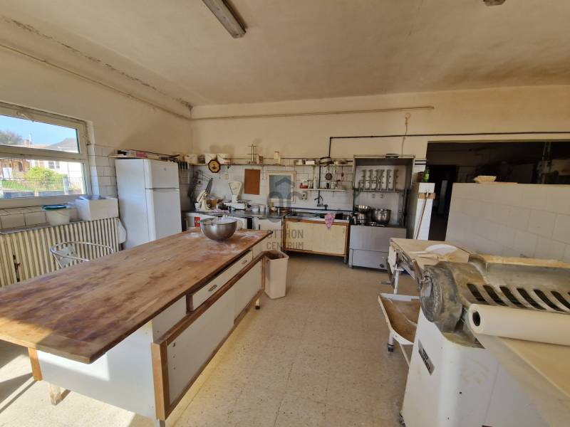 Eladó a képeken is látható, 440 m2 alapterületű családi házzá nyilvánított, pék- és cukrászüzem Berzence frekventált, könnyen megközelíthető részén. Az ingatlanhoz igény szerint a Kft és hozzávásolható, mely nyereséges és hitelképes, így kezdő vállalkozás indításához kiváló alapot nyújt.Ennek irányára 5 millió Ft. Az üzlet közvetlen szomszédságában a tulajdonos 233 m2 nagyságú családi háza is eladó, ezt az ingatlant külön hirdetésben találja. Tulajdonságok: ✅ alapterület: 440 m2, telekterület: 1148 m2✅ a ház az 1990-es években épült, beton alapra, téglából, beton födémmel és cseréppel fedett tetővel✅ 10 cm szigetelés✅ gázcirkós fűtés✅ műanyag nyílászárók✅ ipari áram (3x 40A)✅ tágas garázs✅ a péküzem 2022.12.31-ig működött, igény esetén azonnal újranyitható, minden feltételnek és szabványnak megfelel✅ az utcafronton üzlethelyiség található Lakás célú hitel felvehető az ingatlanra!A ház a falu központi részén helyezkedik el, gyalogosan is minden fontos létesítmény elérhető. Irodánk teljes körű szolgáltatást nyújt kereső ügyfeleinknek.Szakszerű tanácsadással, hitel ügyintézéssel, energetikai tanúsítvány elkészítésével és kedvező díjszabású ügyvéddel nyújtunk segítséget!
