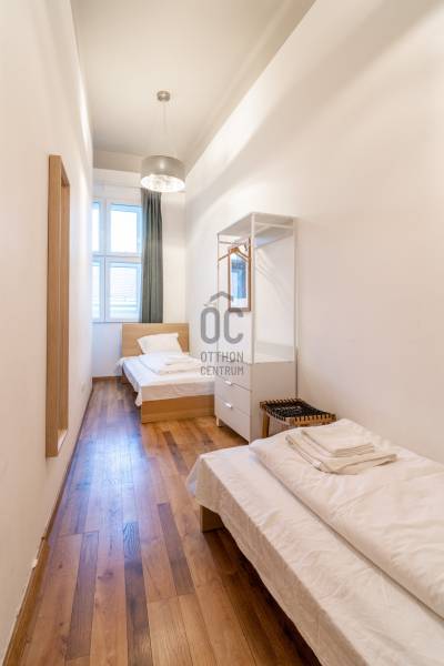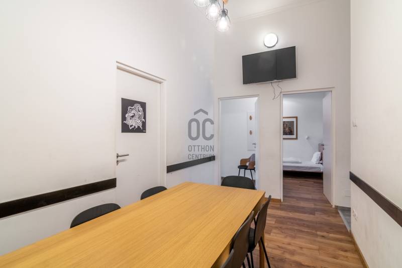 Budapest szívében a GOZSDU udvar SZOMSZÉDSÁGÁBAN (VI. kerület Belső Terézváros) kínálok eladásra egy belső építész által megálmodott és magas minőségben kivitelezett, 75 nm-es, 4 teljes szobás, 2 külön bejáratú fürdőszobás, tipikusan MAGÁNSZÁLLÁSHELY (AIRBNB, BOOKING) céljából kialakított, TELJESKÖRŰEN és MAGAS MINŐSÉGBEN FELÚJÍTOTT, utcai nézetű lakást.Engedéllyel és HRSZ-re szóló társasházi közgyűlési hozzájáruló határozattal rendelkezik - 7 főre, 4 vendégszoba (2 db 12 m2-es és 1 db 13,1 m2-es utcai 1 db 8 m2-es udvari szobával).Az ingatlan jelenleg is működő Airbnb profillal és foglalásokkal rendelkezik, mely igény esetén továbbvihető, azonnal működtethető. Átlag HAVI ÁRBEVÉTELE bruttó 2.500 euró. 2 db külön bejáratú fürdőszobájában egyedi épített zuhanyt, WC-t és mosdót alakítottak ki.Minden helyiség külön klimatizált - lefolyóba bekötött cseppvíz elvezetéssel.Konyhája gépesített, beépített hűtőszekrénnyel, mosogatógéppel, főzőlappal és mikrohullámú sütővel, valamint 8 főre teljes felszereltséggel.Utcai ablakai teljesen hangszigeteltek - dupla sorosak, külső oldalon 3 rétegű-, belső oldalon 2 rétegű hőszigetelt műanyag nyílászárók.Elektromos hálózatát 3x25 Amperre bővítették.Bármerre is indul a városban, a környéken mindig megtalálja a legjobb lehetőséget a tömegközlekedésre, hiszen a 4-6-os villamos, a 70-es, 78-as, 74-es trolibuszok mellett az 1-es 2-es és 3-as metróvonal, valamint számos nappali és éjszakai buszjárat rövid sétatávolságon belül elérhető, továbbá a legnépszerűbb üzletek, éttermek, szolgáltatások, bevásárlóközpontok, illetve kulturális és szórakozási lehetőségek is megtalálhatók a közelben, ezért is vonzó célpont a fiatalok, diákok és turisták számára, akár rövid-, akár hosszútávú kiadásban gondolkozik, kiemelkedően magas hozamot jelentenek tulajdonosaik számára.Bővebb információért várom hívását!Egyedi igényekre szabott lakáshitelekkel állunk rendelkezésére.Bankfüggetlen hitelcentrumunk az országban elérhető összes bank és hitelintézet ajánlatát versenyezteti az Ön számára díjmentesen.Munkatársaink nagy szakmai tapasztalattal várják Önt az előre egyeztetett időpontban akár a normál munkaidő után is.