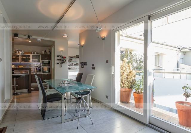 Operától pár perces sétára valósult meg ez nem mindennapi beruházás ahol három magas minőségű ingatlan került átadásra. Az épült központi elhelyezkedésének köszönhetően akár az Opera ház, Liszt Ferenc tér, Gozsdu udvar vagy a Deák Ferenc tér is pár perces sétával elérhető. Az épület teljes körűen megújult és visszanyerte eredeti pompáját Felvonóval csak a megfelelő kód ismeretével gyalogosan pedig kulccsal juthatunk az ötödik szintre, ennek köszönhetően illetéktelenek nem zavarhatják az ott lakok nyugalmát. A mindhárom ingatlan duplex kialakítású. A bejárat szintjén nappali, konyha és terasz található. az alsó negyedik emeleten pedig a hálószobák és a hozzá tartozó teraszok. A vételár tartalmazza a konyhabútort teljes gépesítéssel (Siemens) együtt. A lakások klimatizáltak és teljesen motorizáltak, a GIRA Instabus rendszerének köszönhetően akár interneten keresztül, de beállítás függvényében a lakás bármelyik helyiségéből minden vezérelhető (fűtés – hűtés – árnyékolás – világítás – redőnyök -riasztó stb.) fokozva a lakók kényelmét. A lakóhelyiségek egyedi tölgyfa burkolatokat kaptak a nappaliban padlóregiszterrel. A fürdőszobai szanitereket (tervezést is) a \"Villeroy& Boch\" biztosítja, a szerelvények \"Circle és Cult\" márkájúak. A lakások belsőépítészeti tervezője: a DESIDEA Stúdió.