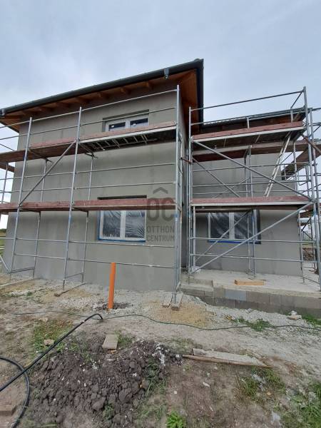 Debrecenben a Tégláskert új házakkal beépült részén, a Gázvezeték utcai forgalomtól távol, eladó egy nettó 187 m2-es, nappali-amerikai konyha + 5 szobás intim ikerház, ahol csak a garázsok érnek össze, de dupla falazattal és köztük hanggátló szigeteléssel, közel 500 m2 telekrésszel.A kivitelezés jelenleg szerkezetkész állapotban van, külső vakolás kész, a színezés után a belső munkák folytatódnak. A nyílászárók beépítésre kerültek és a tető is elkészült. A végleges belső kialakítás jelenleg még változtatható, igény szerinti helyiséglista megvalósítható. Alapból két fürdőszoba lett tervezve és három WC, de a nappali + 5 szobához az emeleten kialakítható egy harmadik fürdőszoba is, épített zuhanyzóval vagy káddal is.Az ár kulcsrakész állapotot takar, amelybe 5 kW napelemes rendszer, 12 kW hőszivattyús rendszer, térkőburkolatok és elektromos autó töltő állomás kiépítése is beletartozik. Részletes műszaki tartalommal és megtekintési időponttal kapcsolatban várjuk hívását a hét minden napján! Az ingatlanból az adásvételi szerződés megkötését követően 4 hónap múlva új otthona lehet!
