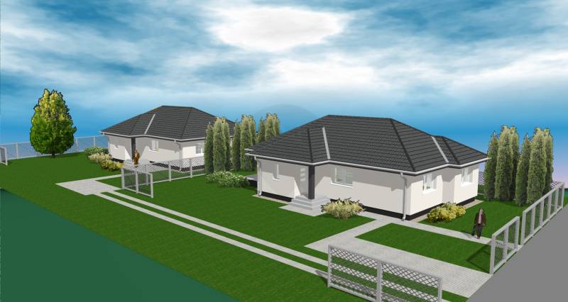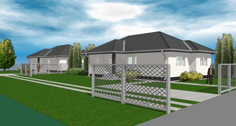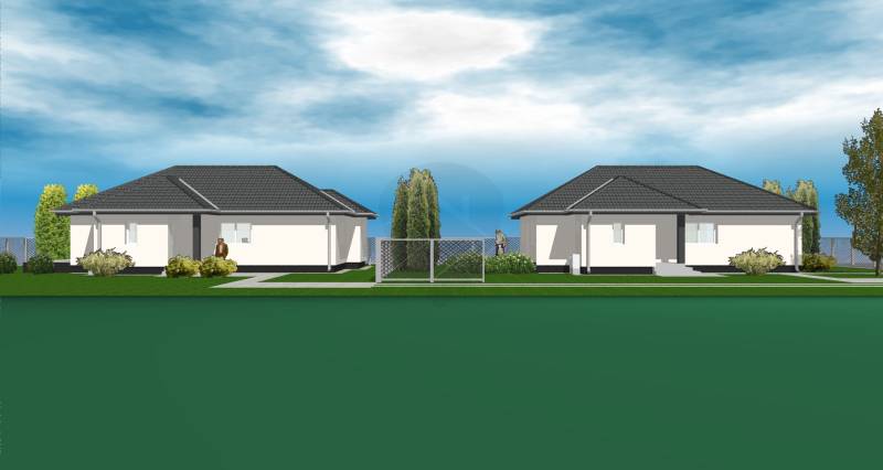 Dányban, eladó 2db új építesű 93m2-es önálló családi ház, egymás melletti telken. A telkek 520m2 területűek, központi helyen. Szerződéskötés után azonnal elkezdődik az építkezés, és 5 hónapon belül átadásra kerül.Építési és műszaki jellemzők:30-as nútféderes téglából épülő falazat.Fa födém 25cm ásványgyapot szigetelésselAntracit színű betoncserép fedés.Homlokzat: 12 cm grafit EPS szigetelés.Padló: 10 cm Austrotherm AT-N100, 6 légkamrás 3 rétegű hőszigetelt nyílászárók.A fűtési rendszer hőszivattyús, padlófűtéssel kombinálva biztosítja a meleget és a melegvizet.Választható műszaki tartalom (meghatározott keretösszegen belül):Hidegburkolat: 5000 Ft/m²-ig.Melegburkolat: 5000 Ft/m²-ig.Csaptelepek: 15.000 Ft/db.Kád vagy zuhany: 40.000 Ft.Beltéri ajtók: 35.000 Ft/db.WC: faba épített rendszerElektromos rendszer:Konnektorok:Szobák: 3 db.Nappali: 4 db + internet és kábel-TV kiállás.Konyha: 6 db.Világítás: helyiségenként 1 pont.Kábeltévé: előkészítés.Extra opciók:Magasabb kategóriás anyagok választása költségkülönbözet finanszírozása mellett.Riasztó- és kapumozgató rendszer előkészítése.Kérésre részletes tervdokumentáció és műszaki leírás is elérhető. A kivitelező korábbi referenciamunkái Sülysápon, Kókán és Dányban megtekinthetők előzetes egyeztetés alapján.Átadás várható időpontja: 2026 1. negyedév.A látványterv illusztráció