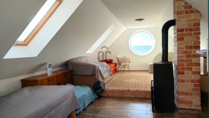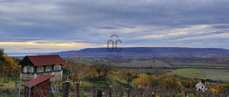 Szent György-hegyen Balatonra örök panorámával bíró varázslatos birtok, amiről mindenki álmodik!Kiemelt megbízás kizárólag az OTTHON CENTRUM kínálatában!Az ingatlanpiacon évről évre felértékelődő Badacsonyi borvidék egyik kiemelkedő gasztro, bor és turisztikai lokációja a Szent György-hegy, melynek nyugati oldalán helyezkedik el ez a különleges fekvésű présház nyaralós ingatlan.A hegyre felvezető aszfaltozott dűlőút mentén egy idő után elfogynak a présházak s amikor már csak az erdő ölel körül bennünket minden oldalról, akkor érkezünk meg ehhez a kivételes adottságú, több szintes, jó állapotú birtokhoz.A természetközeli présház és a különálló hatalmas, 60 m2-es, varázslatos hangulatú, remek állapotban lévő kereszt alaprajzú, teljesen föld alatti borospince elvehetetlen panorámával rendelkezik a Balatonra és a környező hegyekre. A jó gazda által folyamatosan gondozott minőségi borszőlőnek és a vételár részét képező komplett borászati felszerelésnek köszönhetően akár már ebben az évben is a saját borát kínálhatja szeretteinek és barátainak!Az egész terület rendkívül otthonos és hangulatos, tökéletes nyugalmat és intimitást sugároz az erdőkkel körülölelt telek, a hangulatos épület, a gondozott szép szőlősorok ~ pontosan azt a \"Balatoni életérzést\" adja amit oly sokan keresünk s amelyet évről évre egyre kevesebb eséllyel találhatunk meg ebben a térségben. Mára általános a szőlőhegyeken a sűrű beépítettség, az egyre csökkenő szőlős vagy erdős terület ~ mindez ezen az ingatlanon másképp van.Az új tulajdonosa ennek a birtoknak nem egyszerűen egy ingatlant vásárol, ennél sokkal többet kap, olyasmit is, amely pénzben nehezen kifejezhető.Jöjjön el és élje át, tapasztalja meg ezt az élményt!Az épület az elmúlt években szinte teljes körű felújításon esett át, mely érintette a burkolatokat, nyílászárókat, gépészeti és elektromos rendszereket, tetőszerkezetet.A 19,2 m2-es pinceszinten jelenleg egy tároló van. A földszinten egy 12 m2-es konyha-étkező, egy 17,6 m2-es szoba és az abból nyíló 6,4 m2-es hálószoba kaptak helyet, valamint a konyhából nyílik még egy 5,4 m2-es mosdó-zuhanyozó-wc vizesblokk és egy 2,1 m2-es kamra is. A kívülről lépcsőn megközelíthető padlástérben egy, az erdőre és a Balatonra is panorámás 31,3 m2-es nagy belmagasságú hálószoba található. Az épület vízellátását bő és állandó vízhozamú 100 éves kút biztosítja. Ha kedvünk támad a szabadban sütögetni, úgy az egyedileg épített kerti kemencében is megtehetjük, amely csak pár lépésre helyezkedik el a nyaraló előtti 28 m2-es burkolt, árnyékolt terasztól. Az ingatlan két helyrajzi számon, az alábbi adatokkal nyilvántartott. Egyik telek 1375 m2 nagyságú, szőlő művelési ágú, a másik 2258 m2 telekterületű, szőlő, fásított terület és gazdasági épület megnevezésű.Az ingatlan a mellette található, önálló helyrajzi számmal rendelkező 2766 m2 területú, szőlő és gazdasági épület megnevezésű - rendszerünkben NY012263 regiszrációs számmal szereplő - birtokkal együtt is megvásárolható, aminek eredményeként egy rendkívüli, egyedülálló birodalom tulajdonosává válhat!Ilyen adottságú eladó területet manapság már nehezen találhatunk itt a Szent György-hegyen, de az egyre szigorodó építési előírások és kötelmek miatt építeni még kevésbé tudunk.Befektetésnek, turisztikai kiadásban gondolkodóknak, szőlészeti gazdálkodóknak és családi nyaralónak egyaránt kitűnő választás.A szőlős birtok a földtörvény alá eső ingatlan, így kifüggesztés köteles, a hatósági eljárást követően azonban azonnal birtokba vehető és hasznosítható, de az esetleges átépítési elképzelések kapcsán az építész tulajdonos is tud javaslatokat adni.Ha felkeltettem érdeklődését hívjon bizalommal, a hét minden napján szívesen megmutatom, amíg még elérhető a kiváló ajánlat!