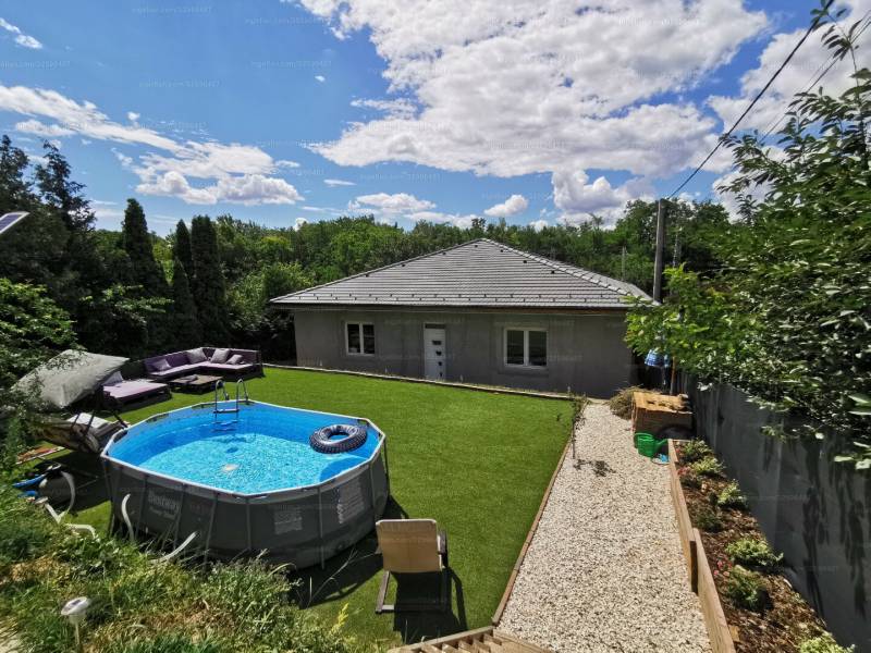 Egyedülálló lehetőség várja azokat a családokat, akik egy csendes, rendezett környéken szeretnének élni. A Pest megyei Mogyoródon, a Jégvirág úton kínálunk eladásra egy 860 nm-es telken álló, egyedi tervezésű, jó állapotú családi házat. A kisebbik ház 62m2 azonnal költözhető, 3 szoba, konyha, fürdőszoba. Az ingatlan légkondicionált, hűtő-fűtő klímával felszerelt, így a nyári melegben sem kell aggódnia a jövendőbeli tulajdonosnak. A nagyobbik ház 128m2, víz, villany bevezetve. Kívülről 15cm Dryvit szigetelés mind két ingatlanon. A nagy ház jelenleg edzőteremként üzemel. Igényesen kialakítva, fürdővel, hűtő - fűtő klímával, illetve konyha, nappali résszel. Illetve a hátsó részén külön bejárat előszobával. A ház így ikerházra bontható. A terasz műfűvel borított. Az ingatlanhoz tartozik egy rendezett kert, amelyben egy medence is helyet kapott. A kertkapcsolatos lakás előnyeit kihasználva, a kertben található egy kerti tároló és egy dézsa fürdő is. Az ingatlan tehermentes, így az új tulajdonosok azonnal birtokba vehetik. A bővítési lehetőség miatt pedig akár további szobákat is kialakíthatnak az ingatlanban. A két ház egymástól teljesen elszeparálható, így akár két vagy az edzőterem megszüntetésével három generáció együtt de mégis külön élésére, illetve a kisebbik ház kiadásával fix bevételi forrásra lehet szert tenni. Az udvari beállóban 5 parkolóhely áll rendelkezésre, a kisház előtt 2 gépkármű számára van lehetőség, így a járművek biztonságban parkolhatnak melyről 3db éjjellátó kamera is gondoskodik.. Az ingatlan LED hangulatvilágítással rendelkezik, így az esti órákban is kellemes hangulatot teremthetünk. A Falusi Csok kompatibilis ingatlanban riasztórendszer is található, így az otthonunk minden pillanatban biztonságban lesz. A környék csendes és biztonságos, így ideális otthon lehet nagy családok számára. Az autóval közlekedők számára is könnyen megközelíthető a Jégvirág út, és a tömegközlekedést is könnyen elérhetjük. Ha szeretne egy zöld otthonban élni, és egy olyan ingatlant keres, amely minden igényét kielégíti, akkor ne habozzon! Keressen bizalommal, és késséggel válaszolok kérdéseire.