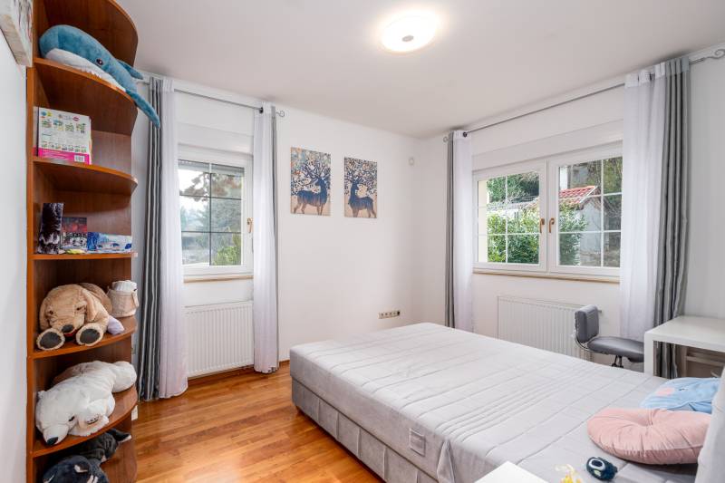 Gyönyörű panorámás családi ház eladó Adyliget lábánál. - 2 nappali- 4 hálószoba- 2 fürdőszoba - infraszauna + zuhanyzó- gardrób- mosókonyhaA ház 2009-ben épült, nagyon jó állapotú, 4 szintes, csúsztatott félemeletes kialakítással. Kétgenerációs házzá könnyen alakítható.A földszinti amerikai konyhás nappalihoz 22 m2-es terasz kapcsolódik. Az emeleti nappaliban konyha kialakítható, így egy szeparált lakrész jöhet létre.A fűtést gázkazán biztosítja részben radiátoros, részben padlófűtéses kialakítással. A ház riasztórendszerrel felszerelt.A házat gyönyörűen parkosított kert övezi, melyben egy dísztó is helyet kapott.Parkolásra a kertben 2 autó számára nyitott beálló biztosított.A közelben több nemzetközi iskola megtalálható (Francia Iskola, Amerikai Iskola, SEK)Tömegözlekedés szempontjából a hűvösvölgyi végállomásra futnak be a buszok (157, 57, 257, 63)A környék infrastrukturális ellátottsága kiváló, számos bevásárlási lehetőség (LIDL, Spar, Tesco), posta, gyógyszertár, orvosi rendelő, továbbá iskola, óvoda áll rendelkezésre.Irányár 850.000 Euro.Ha felkeltette érdeklődését és szeretné megtekinteni, várom hívását!