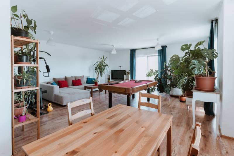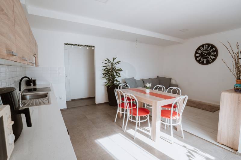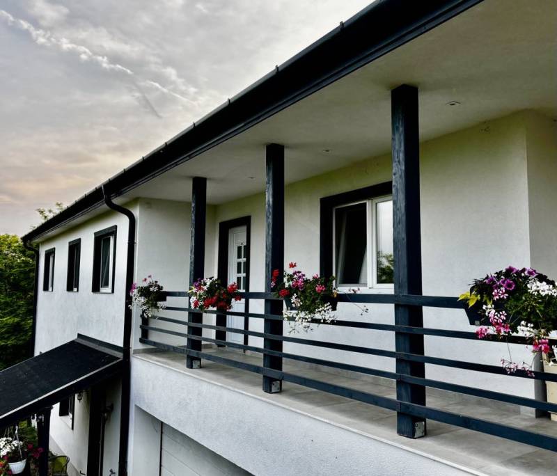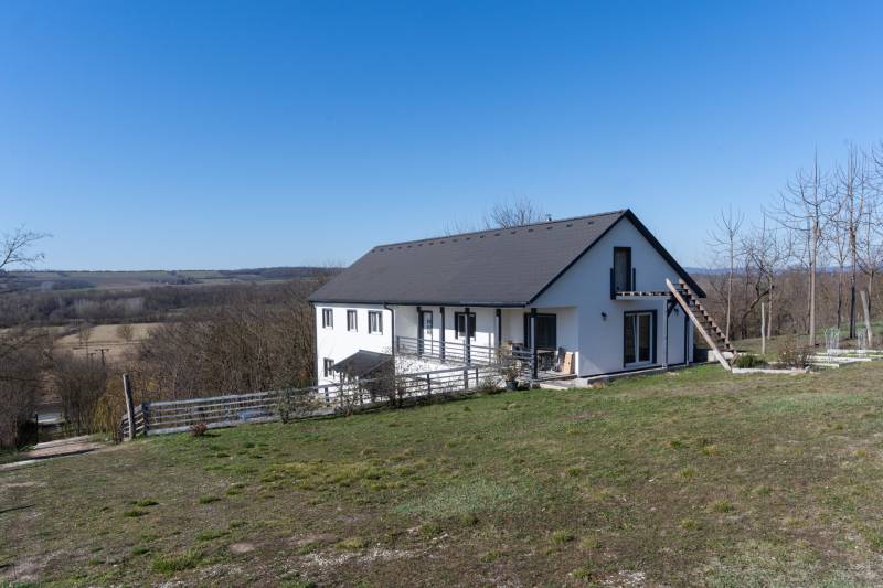 Családosok, egybeköltözők figyelem! Egy igazán különleges lehetőség vár rád Tabajdon, Fejér vármegyében, ahol egy 4 éve épült lakóingatlan kínálja magát a jövőbeli otthonodnak. Az ingatlan alsó szinten YTONG-ból és beton pincefalazóból, a felső szint fa könnyűszerkezetből épült, 10 cm grafitos homlokzati hőszigeteléssel, a műanyag nyílászárók 3 rétegű üvegezéssel, szúnyoghálóval. A ház 270 nm, és egy 3383 négyzetméteres telken helyezkedik el, ami bőséges teret biztosít a gyerekeknek a szabadban való játékhoz, valamint a családi összejövetelekhez, kertészkedéshez. Ez az 5 szobás, 2 nappalis, 3 fürdőszobás ház újszerű állapotban várja új lakóit, így csak be kell költözni, és élvezni a kényelmet és a nyugalmat, amit ez a hely nyújt. Alsó szint: - Előszoba- Nappali, konyha és étkező egy légtérben- 2 kényelmes hálószoba- Fürdőszoba WC-vel- KamraFelső szint, akár külön bejárattal: - Külön szoba hálószobával és fürdőszoba WC-vel- 2 hálószoba- Nappali, étkező egyben (konyha előkészítve)- Fürdő és WC külön- GardróbA fenti lakrészből juthatunk ki a teraszra, onnan a hatalmas kertbe, ahol élvezheted a szabadban töltött időt. A panorámás kilátás pedig csak fokozza a hely varázsát, hiszen a természet szépsége minden reggel új élményekkel ajándékoz meg. A garázs két autó számára kényelmes parkolást biztosít, szekcionált elektromos garázskapuval. A ház fűtése puffertartályos vegyestüzelésű kazánnal megoldott, padlófűtés és radiátoros hőleadókkal, a garázsban is, így a téli hónapokban sem kell aggódnod a magas rezsiköltségek miatt. A melegvizet elektromos bojler szolgáltatja, a kertben két lemez tároló is található. Az ingatlan bútorozottsága megegyezés szerint alakul, így lehetőséged van arra, hogy saját ízlésed szerint alakítsd ki az otthonod. Riasztórendszer előkészítve, gáz alapvezeték kiépítve a házig. A két szintet házon belüli lépcsőház köti össze, de kívülről is rendelkezik külön bejárattal a ház.A falusi CSOK és CSOK Plusz kompatibilis ingatlan nemcsak a családi otthon megteremtésére ad lehetőséget, hanem befektetési célra is kiváló választás lehet, hiszen a környék fejlődése és a növekvő kereslet biztosítja a jó megtérülést.A Váli völgy csodás természeti adottságainak köszönhetően, gyönyörű környezetben várja új lakóit ez a ház. A közlekedés szempontjából is kedvező helyen fekszik az ingatlan, hiszen Tabajd jól megközelíthető autóval és tömegközlekedéssel egyaránt, Budapest Kelenföld 35 perc autóval. Iskola, óvoda, bölcsőde, háziorvosi rendelő és egyéb közösségi intézmények is megtalálhatók a településen.Ha kérdéseid lennének, vagy szeretnéd megtekinteni ezt a kivételes ingatlant, ne habozz! Bizalommal kereshetsz, és szívesen válaszolok minden felmerülő kérdésedre. Az álomotthonod itt vár rád Tabajdon!