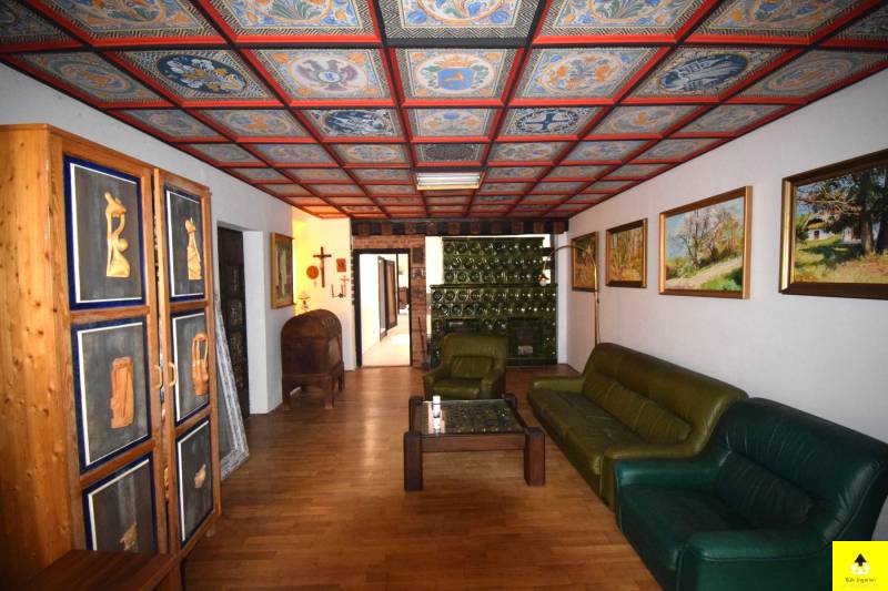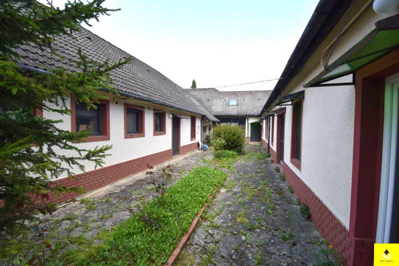 Eladó egy egyedülálló hangulatú családi ház Cák bájos településén, 250 m²-es alapterülettel, beépített tetőtérrel és különleges művészi részletekkel.A ház kiváló szerkezeti állapotban van, tetőszerkezete Bramac cseréppel fedett, ami időtálló védelmet biztosít. A tetőtér beépített, kivéve a műterem fölötti részt, ahol nyitott, látványos fedélszék emeli ki a belső tér esztétikumát és tágas érzetét. Az épület egy része alatt pince található, amely kiváló lehetőséget nyújt tárolásra vagy akár borospince kialakítására is.Az ingatlan Cákon található, a Kőszegi-hegység oldalában, gyönyörű természeti környezetben. A csendes, nyugodt falu tiszta levegője és békés hangulata ideális választás azok számára, akik nyugalomra vágynak, ugyanakkor fontos számukra Kőszeg és Szombathely közelsége.A ház két különálló, de harmonikusan kapcsolódó egységből áll, amelyek akár külön is használhatók:• A bal oldali lakótér egy tágas dolgozószobát, két hálószobát, egy konyhát, étkezőt, fürdőszobát és közlekedőt foglal magában.• A jobb oldali szárnyban egy 58 m²-es műterem, egy 57 m²-es nappali, egy hálószoba és egy fürdőszoba található. A műterem különösen ideális művészeknek vagy kreatív tevékenységhez. Az épület egyik igazi különlegessége a festett kazettás mennyezet, amely egyedi, művészi hangulatot áraszt.A két épületrészt egy hatalmas, zárt kapualj köti össze, amely nemcsak karakteres térkapcsolatot teremt, hanem több autó kényelmes és biztonságos parkolását is lehetővé teszi. A kapualj fölötti tetőtér szintén beépített, így további hasznos élettérként szolgál.A ház egy zárt, intim udvart ölel körbe, amely biztosítja a teljes nyugalmat és privát szférát. Két jó állapotú fatároló is rendelkezésre áll, amelyek praktikus megoldást nyújtanak a tárolásra.