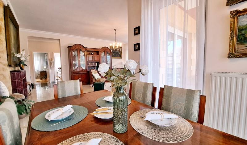Kecskemét Vacsiköz városrészében, kínálunk eladásra egy igazán különleges, exkluzív családi otthont, amely minden igényt kielégít. Ez a lakóingatlan 113 négyzetméteres alapterületével és 760 négyzetméteres telek méretével tökéletes választás lehet családosok számára, akik a nyugalmat és a kényelmet keresik. Az ingatlanban három világos hálószoba található, amelyek tágasak és barátságosak, ideálisak a családi élethez. A fürdőszoba modern, a lakás állapota pedig kiváló, így Önnek nem kell a felújítással bajlódnia. A ház szívében egy amerikai konyhás nappali helyezkedik el, amely a családi összejövetelek és baráti találkozók tökéletes színtere lehet. A nappalihoz tartozik egy gyönyörű kandalló is, amely nemcsak a téli estéket varázsolja meghitté, hanem egyedi hangulatot is ad az otthonnak. A 30 négyzetméteres terasz ideális helyszín a reggeli kávé elfogyasztásához vagy a nyári grillezésekhez, ahol a család és barátok együtt tölthetik az időt. Az ingatlanhoz önálló garázs tartozik, amely két autó számára biztosít kényelmes parkolási lehetőséget. Az automata öntözőrendszer gondoskodik a szépen karbantartott kert folyamatos zöldelléséről, így Önnek nem kell az időjárás miatt aggódnia. A környék rendkívül felkapott, hiszen csendes utcái és barátságos szomszédai ideális környezetet biztosítanak a családok számára.Kecskemét városának központja csupán néhány perc autóútra található, ahol minden szükséges szolgáltatás elérhető: boltok, éttermek, iskolák és egészségügyi intézmények. A tömegközlekedés is kiváló, így könnyedén elérheti a város többi részét. A Vacsiköz városrész biztonságos és nyugodt, ideális helyszín a gyermekek felnevelésére, hiszen a környéken számos játszótér és zöld terület található, ahol a kicsik szabadon játszhatnak. Birtokba-adási idő: 1 hónapA ház HOME STAGING szakemeber segítségével lett berendezve, ezt a szolgáltatást a leendő vevő is igénybe veheti. Az ingatlan 360°-s képeit megtekintheti a facebook / Felföldi Mihály Ingatlanszakértő powered by Rock Home oldalon.Amennyiben felkeltette érdeklődését ez a kiváló ingatlan, ne habozzon, keressen bizalommal! Szívesen válaszolok minden kérdésére, és segítek Önnek a legjobb döntés meghozatalában. Az otthonkeresés izgalmas, és mi itt vagyunk, hogy támogassuk Önt ezen az úton!