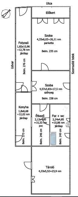 Tisztelt Érdeklődő!Ha olyan otthont keres, amely saját igényeire szabható, és közben egy nyugodt, mégis városközponthoz közeli környezetben helyezkedik el, akkor érdemes közelebbről is megismernie ezt a makói családi házat!A Szent Gellért utcában található, vegyes falazatú ház hasznos alapterülete 90 m², a telek pedig 403 m²-es – pont olyan méret, amely még könnyen gondozható, ugyanakkor bőven ad lehetőséget pihenésre vagy kertészkedésre.Az ingatlan 2 szobával, konyhával, étkezővel, fürdőszobával (WC-vel), valamint egy közlekedőfolyosóval rendelkezik. Az egyik szobát parketta, a másikat padlószőnyeg borítja, alatta járólap található. A többi helyiség burkolata is a praktikumot szolgálja: a konyha, a folyosó és a fürdő járólapos, az étkező PVC-vel fedett.A ház átlagos állapotú, egyes részei már megújultak, de több helyiség korszerűsítésre vár. Ideális lehet azoknak, akik szívesen alakítanak saját ízlésük szerint. Az utcai szobák hőszigetelt műanyag ablakokat kaptak, míg a többi nyílászáró eredeti, fából készült – karbantartással azonban ezek is hosszú távon használhatók maradnak. Az udvar felől hagyományos parasztcserép, míg a szomszéd telek felől szalagcserép fedi a tetőt.A fűtést gázkonvektorok biztosítják, a meleg vízről pedig villanybojler gondoskodik. A házban az elektromos hálózat korszerűsítése már megtörtént (1x16A), a víz és a csatornahálózat szintén. Az udvar karbantartott, és az épülethez tároló is tartozik, ami praktikus megoldást kínál a ritkábban használt holmiknak. Garázs ugyan nincs, de az udvari beállás megoldott.A városközpont könnyen elérhető: autóval mindössze 3 perc, biciklivel 5, gyalogosan pedig alig 18 perc sétával bent van Makó szívében. Gyalogosan iskola 6 perc, óvoda 10 perc bevásárlási lehetőség 5 percre található.Költözni is egyszerű – az ingatlan 30 napon belül birtokba vehető. Per és tehermentes.Energetikai tanúsítvány: vanEnergetikai besorolás: ICO2 kibocsátás: IHa szeretne egy jól alakítható, barátságos otthont Makón, ne várjon tovább!Hívjon most, vagy foglaljon időpontot a megtekintésre – és kezdje el megvalósítani elképzeléseit ebben a sok lehetőséget rejtő ingatlanban!Makóról bővebben itt: http://mako.hu/makoi-seta/Legyen tisztában pénzügyeivel, mielőtt elkötelezi magát! Ebben díjmentesen az Ön rendelkezésére áll bankfüggetlen hitelközvetítőnk.Vevőinket profi és kedvező díjazású ügyvédi háttérrel is segítjük a szerződéskötés során.Az ingatlanról rövid bemutató videó is készült. Ha ezt a hirdetést az Otthon Centrum weboldalán nézi, akkor a videó azonnal indítható a képgaléria elején. Ha egy másik weboldalon találta ezt a hirdetést, kérem, nyissa meg az Otthon Centrum weboldalát, kattintson a „Regisztrációs szám keresése” menü pontra, és írja be ezt a regisztrációs számot a keresőbe: H501483 Itt meg tudja tekinteni az ingatlanról készült videót és még több képet, vagy írjon nekem, és szívesen elküldöm a felvételt, képeket.#otthoncentrummako #makoiingatlan #makoicsaladihaz #makoeladohaz #ingatlan #otthoncentrum #eladohaz #ingatlanpiac #nyugalom #hagymatikum #forsale #oc #hitel #ocmako #biztositas #realestate #veledmindenlepesnel