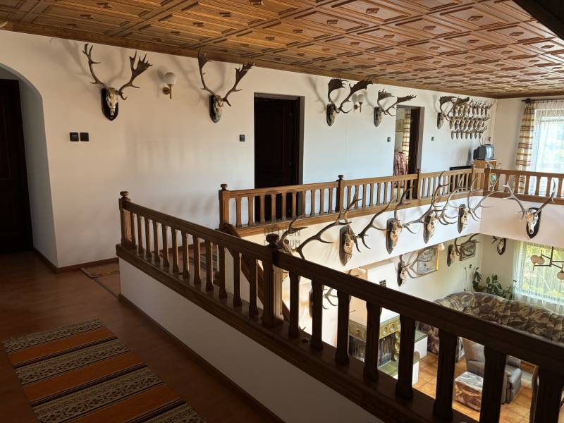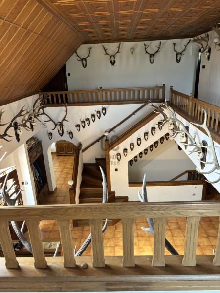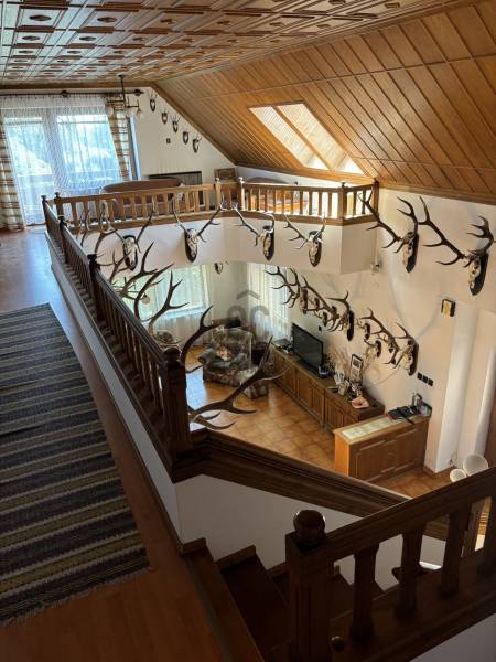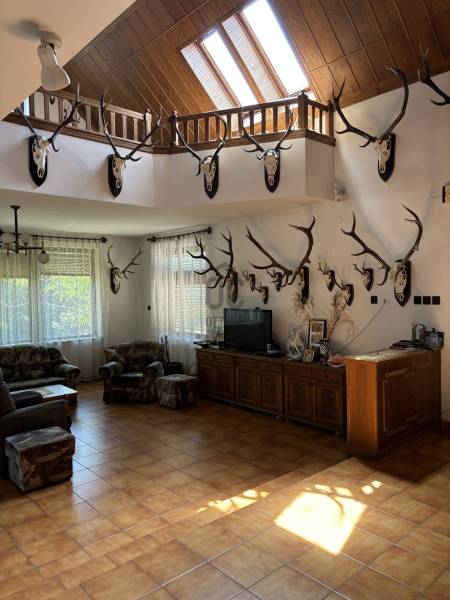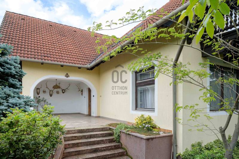 KIEMELT AJÁNLATUNK!!!Szentjakabfa Veszprém vármegye Balatonfüredi járásának egyik hamisítatlan hangulatú községe, amely a Káli-medence, a Balaton és a Veszprémi-fennsík ölelésében helyezkedik el. A különleges hangulatú, csendes Nivegy-völgy egyik települése: Magyarország e régiója magában hordozza a balatoni táj minden szépségét: vadregényes erdők, szőlőbirtokok, történelmi műemlékek és hagyományos mesterségüket a mai napig űző mesteremberek műhelyei tarkítják ezt az idilli, a Balatontól mégis mindössze 5-7 kilométerre fekvő területet.Ebben a festői környezetben kínálunk eladásra egy 300 négyzetméter alapterületű családi házat, amely kialakításának köszönhetően állandó otthonként, de nyaralóként vagy panzióként is hasznosítható. A háromszintes ház hat hálószobával, két fürdőszobával és két külön mellékhelyiséggel rendelkezik. A hangulatos konyha, valamint a tágas nappali és étkező lehetővé teszik, hogy nagyobb családi vagy baráti társaságok élvezzék itt egymás társaságát egy pohár helyi bor mellett. A napfényes belső terekben igényes faburkolatok és egy kandalló is található.A ház központi fűtéssel rendelkezik; minőségi anyagok felhasználásával (THERMOPOR tégla, dryvit hőszigetelés, Bramac cserép és SOFA nyílászárók) készült, ezáltal lehetővé téve, hogy sokáig szolgálja leendő tulajdonosa kényelmét. Az ingatlan falusi CSOK kompatibilis. A házhoz egy örök panorámával és nagy fákkal rendelkező kert tartozik, amely ideális helyszíne akár társasági összejöveteleknek, akár egy nyugodt és csendes vasárnap délutáni kávézásnak. Az ingatlan teljesen alápincézett, a garázs három autó számára biztosít parkolási lehetőséget.Szentjakabfáról 10 perc alatt elérhetők olyan nagyobb települések, mint Nagyvázsony vagy Zánka, emellett félórás autóúttal megközelíthető Balatonfüred és Veszprém is. Könnyűszerel elérhető a 71-es főút, melyen a Balaton egész északi partja végigjárható. A környék a Balaton mellett számos természeti és kulturális látnivalót nyújt, a geológiai csodának számító Hegyestű, a szentbékállai kőtenger, a Művészetek Völgyéről híres Kapolcs, a nagyvázsonyi Kinizsi-vár vagy éppen a Tihanyi-félsziget mind egy karnyújtásnyira található.Bízom benne, hogy az ingatlan felkeltette az érdeklődését, bármilyen kérdés esetén forduljon hozzám bizalommal!Ez az ingatlan a \"Felező csomag\" megbízási portfólióhoz tartozik. Részletek az Otthon Centrum weboldalán.