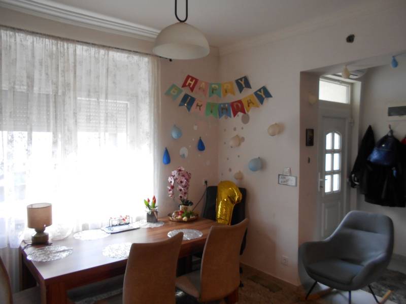Megvételre kínálok Nyíregyháza - Oroson nagyon kedvelt, csendes, polgárias mellékutcában, egy, a 60 -as évek végén vályogból épült, cserepes lemezzel fedett, belül szép állapotú családi házat 4002 nm -es, 15 méter széles telken. A részben alápincézett ingatlan belső elrendezése átgondolt, kényelmes, a szobákat laminált padlóval, a többi helyiséget (az előszoba-étkezőt, a konyhát, a közlekedőt és a wc-fürdőszobát) járólappal burkolták. Az épületet 2021 -ben fedték át, valamint a külső nyílászárókat korszerű műanyagra cserélték és az ablakokat redőnnyel szerelték fel. A víz, a fűtés, illetve az elektromos vezetékek, az aljzatbetonozás, a burkolatok cseréje, továbbá a radiátorok felszerelése és a vegyes kazán beépítése 2022 -ben fejeződött be. Az udvaron, az épület folytatásaként pince lejáró, egy többfunkciós helyiség (raktár, nyári konyha, esetleg iroda) a kazánház, illetve garázs található. A lakóház külső festésére a festék már rendelkezésre áll, a vételár részét képezi.Nyíregyháza - Oros eladó családi házAz ingatlanról készült videó megtekinthető: http://youtu.be/a1foddWs8Ck