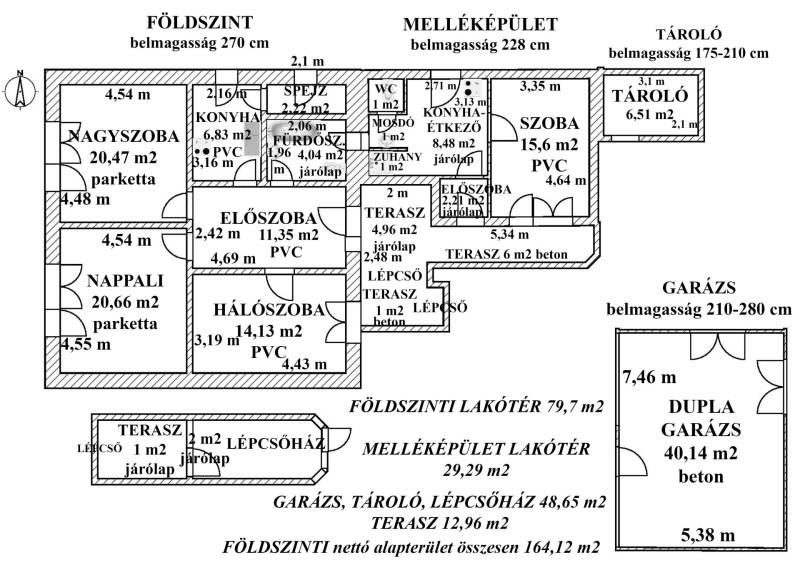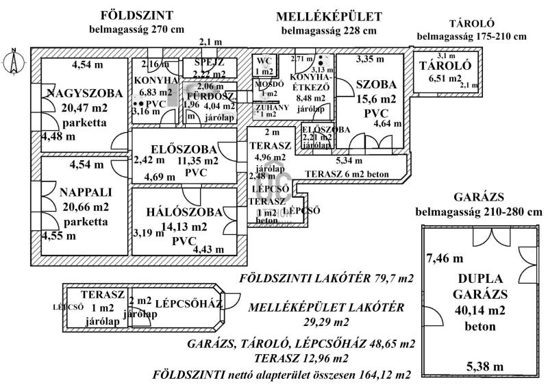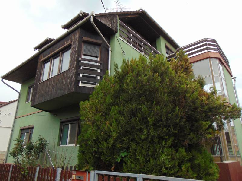 Eger Felsővárosban kínálunk eladásra egy ár-érték arányban különleges ajánlatnak számító, felújítandó családi házat, amely ideális választás lehet akár egy nagyobb család, akár összeköltözők számára, akik szeretnék saját ízlésük szerint kialakítani otthonukat, akár befektetőknek, akik négy lakásos társasházat is kialakíthatnak itt. Az 1029 négyzetméteres, sík telken elhelyezkedő ingatlan nettó alapterülete 373 nm, amelyből a melléképületek, tetőtéri alacsony sarkok levonása utáni hasznos lakótér is impozáns, 267 nm. A házban összesen 11 különnyíló szoba található, így elegendő helyet biztosít a család minden tagjának, vagy akár vendégek fogadására is. Az ingatlanhoz négy fürdőszoba tartozik. A tágas nappali világos és barátságos, ideális helyszín a közös családi programokhoz, míg a tetőterasz teljes kilátást nyújt a környező hegyvidékre, amely még inkább fokozza az ingatlan vonzerejét. A szerelőaknás garázs két autó számára biztosít parkolási lehetőséget. Az ingatlan környéke kiváló ellátottsággal és közlekedési adottságokkal rendelkezik. A csendes, rendezett kertvárosi környezet ideális választás lehet családok számára, akik a nyugalmat és a biztonságot keresik. A kisállattal is költözhető, kertkapcsolatos lakás lehetőséget ad arra, hogy a szabadban is eltölthessenek kellemes időt. A ház felújítandó állapota lehetőséget ad arra, hogy saját elképzelései szerint alakítsa ki otthonát, akár bővítési lehetőségek kihasználásával is.A ház jelen formájában három különálló lakással rendelkezik.-A földszinti lakás 1961-ben tufakőből épült, 79,7 nm-es, belmagassága 270 cm. A nyugatra tekintő utcai homlokzatot két tágas, 20 négyzetméteres, parkettás szoba foglalja el, ezenfelül egy 14 nm-es hálószoba, konyha, spejz, kádas fürdőszoba és egy méreténél fogva étkezőnek is alkalmas előszoba-hall találhatóak benne, az udvar felé pedig terasza van. Statikai állapota hibátlan, masszív, ugyanakkor itt a falak szigetelése szükséges a korszerűsítés során.-Az emelet-tetőtér egy belső kétszintes, 158 nm-es hasznos alapterületű lakás, amely 1987-ben szilikát emeletráépítéssel készült. Az emelet a különálló, nyolcszögletű, üvegfalas lépcsőházból közelíthető meg, hasznos alapterülete 91 nm, ebben nincs benne a változó belmagasságú, tetőtéri lépcső alatti 2 nm-es tároló. Itt található a ház legnagyobb helyisége, a 32 nm-es, parkettás nappali. Déli oldalán szabadtéri erkéllyel, nyugaton pedig trapéz alakú zárterkéllyel rendelkezik, antik hatású retró bútorai külön vagy a házzal együtt is megvásárolhatóak. Mellette egy 19 nm-es, laminált padlós hálószoba, szemben egy kisebb hálószoba kerültek kialakításra. Ezen a szinten különálló wc és kédas fürdőszoba található, és a konyha-étkezőhöz itt is tartozik spejz.A tetőtér hasznos alapterülete 67, az alacsony részekkel együtt 89 nm. Két parkettás és két szőnyegpadlós hálószoba, egy zuhanyzós fürdőszoba-wc helyiség és a délnyugati szobához saját erkély állnak rendelkezésre. A délkeleti szobából közelíthető meg az üvegfalas lépcsőház tetején kialakított tetőterasz, ahonnan a négy égtáj felé nyílik kilátás a Nagy Eged-hegy, a felsőtárkányi Vár-hegy, a Bükk főgerince és a várost körülvevő dombok panorámájával.-A melléképületben található a saját teraszáról külön nyíló, harmadik, 29 nm-es garzonlakás: előszoba, konyha-étkező, szoba. A wc különálló, azonban a zuhanyzós fürdőszoba lefalazása itt jelenleg hiányzik, tehát némi belső átalakítás szükséges a teljes értékű lakás kialakításához.Az ingatlan egy régi, de funkcionális, nagyteljesítményű gázkazánnal, cirkófűtéssel üzemel, kivéve a garzonlakás hálószobáját, ez az egy helyiség külön gázkonvektoros. A gázkazán a pincében található, a műhelyből nyíló kazán helyiségben. A földszinti és az emeleti lakások külön-külön, illetve közösen is fűthetőek innen. A fűtés esetleges korszerűsítése az új tulajdonosra vár, ugyanakkor a nagy tetőfelület kiválóan alkalmas napelem telepítésre. A főépület nyílászárói műanyagok, részben redőnyösek, az emeletráépítés idejéből, mérlegelendő lehet, hogy közülük melyek szorulnak cserére. A garzonlakás fa nyílászárós.A fentieken kívül a lépcsőház alatti kisebb pinceszinti tároló, egy külön kerti tároló, ólak és a 40 nm-es dupla garázs tartoznak az ingatlanhoz, a bal oldali beálló alatt szerelőaknával. Valamennyi helyiség mérete, burkolata, elhelyezkedése a négy mellékelt alaprajzon megtalálható. A kertben többféle gyümölcsfa, veteményes és beton sütögetők találhatóak, az udvaron pedig fúrt kút. (Az északi telekhatárra a szomszédos háznak gázvezeték szolgalmi joga van bejegyezve, de ez nem vesz el hasznos részt a kertből.)A tehermentes ház csendes, kertvárosi mellékutcában, de a főút közelében található, a Tesco, az Obi és számos áruház, szaküzlet, posta, iskola, buszmegálló szomszédságában, sík helyen, ahonnan minden szolgáltatás szintkülönbség nélkül, általában pár perc sétával elérhető. Befektetők számára is figyelemre méltó a 255 ezer Ft-os, egyedi négyzetméterenkénti ára, amely tükrözi az ingatlan felújítandó, átlagosnál nagyobb beruházást igénylő állagát, ugyanakkor ez rendkívüli megtérülést kínál. Még a garázsok, tárolók stb. nélküli hasznos lakótér négyzetméter ára is csupán 355 ezer Ft, amely még mindig jóval átlag alatti. Amennyiben érdeklik a részletek, vagy szeretne időpontot egyeztetni a megtekintésre, bizalommal keressen! Szívesen válaszolok kérdéseire, és segítek Önnek megtalálni az 