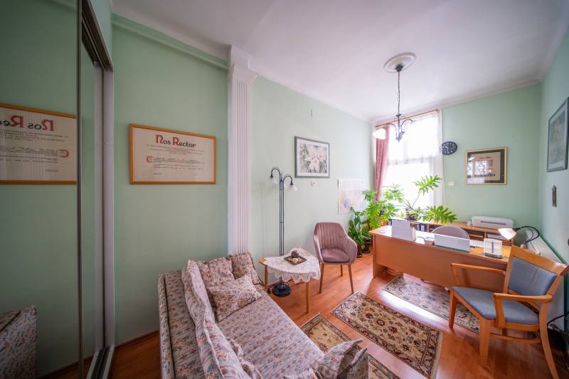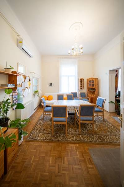 Eladóvá vált a Békéscsaba történelmi - Munkácsy Negyedében -, egyedülálló elhelyezkedéssel, egy igazi gyöngyszem! Az 1906-ban épült a Donner Lajos leányiskola igazgató által tervezett sarokház, mely a Dr. Becsey Oszkár és a Deák utca találkozásánál található. 1936-tól a városi tisztifőorvos otthona volt, hosszú évtizedekig egy alapítvány működött benne.A ház közvetlen szomszédságában található a Vízmű Iskola, az Oliva-Med Magánklinika, egy gyógyszertár, a kórház..... Az utca további házai is nagypolgári épületek, amelyek a környék eleganciáját és történelmi jellegét hangsúlyozzák.Az ingatlan igazi időtálló értéket képvisel, és most egy új tulajdonosra vár!A ház főbb jellemzői:Össz.lakótér: 441 nm (földszint-emelet)Belmagasság: 376 cmTelek: 735 nmHelyiségek: 7 szoba, 2 előszoba, veranda, konyhák, kamra, pince, garázs ......Szobák elrendezése: 3 db 27 nm, 1 db 29 nm, 1 db 20 nm, 1 db 15 nm, 1 db 12 nm 2 konyha (15 nm és 8 nm)2 fürdőszoba, 3 külön WC (köztük egy akadálymentesített) 2 tágas terasz (31 nm és 12 nm) 2 garázs (22 nm és 30 nm, szerelő akna) 69 nm-es pince, eredeti állapotában, 225 cm belmagasság.Fűtés: cirkó és hagyományos gázkazán, hűtő-fűtő klímák az emeleten és földszinten.Az ingatlan története és különlegessége:Az ingatlan két utcáról is rendelkezik bejárattal, parkolóval. A Dr. Becsey Oszkár utca felőli rész 1998-ban teljes felújításon esett át a Gadara Ház számára biztosított helyet. A Deák Ferenc utca felőli rész egy családi otthon, amely különleges hangulatával és tágas tereivel ideális lakóhely. A ház eredeti állapotú pincéje, a magas belmagasság és a történelmi polgári hangulat különleges lehetőséget biztosít a felújításhoz és modernizáláshoz. Kiváló befektetés vagy családi otthon. Ez a történelmi épület nemcsak egyedülálló hangulatot ad, hanem remek lehetőséget kínál a jövőbeli bővítésre, felújításra. A két különálló részből álló ház lehetőséget biztosít arra, hogy többfunkciós ingatlan legyen, amely családi otthonnak, irodának vagy akár szociális intézménynek, egészségközpontnak, iskolának, óvodának, bölcsődének, ügyvédi munkaközösségnek, kiállítóteremnek........ is otthont adhat.Ne hagyja ki ezt a ritka lehetőséget, és tekintse meg személyesen ezt a patinás polgári házat. Hívjon és mesélek még a házról!