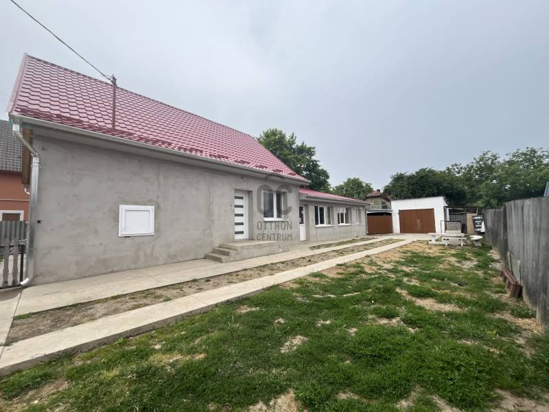 Két generációs otthon egy árért, már felújított főépülettel, elkezdett második lakrésszel, csak beköltözni kell!Eladó egy 65+60 m²-es családi ház, mely egy 543 m²-es telken helyezkedik el. A főépület teljeskörű felújításon esett át:✔ Új víz-, szennyvíz- és villanyhálózat✔ Új aljzatbeton 5 cm-es szigeteléssel, padlófűtéssel✔ Gipszkarton álmennyezet spotlámpákkal, hőtükör fóliával, 5 cm hőszigeteléssel✔ 30 cm üveggyapot szigetelés a padláson✔ Új cserepeslemez tető, ellenlécezve, fóliázva✔ Modern alumínium ereszcsatorna rendszer✔ 10 cm külső homlokzati szigetelés✔ Udvar újrabetonozva saválló cementtelA belső elrendezés: 3 szoba, konyha-étkező, fürdőszoba WC-vel, közlekedő.A klímák előkészítve, a konyhában és közlekedőben vízálló laminált parketta került lerakásra.A főépületből közvetlen átjárás nyílik a második, 60 m²-es épületbe, ahol már megkezdődött a felújítás (új radiátorok, villanyvezetékek), két család számára is ideális!Mindkét épületrészhez műanyag nyílászárók tartoznak, és új redőnyök.Fűtési lehetőségek: gázkazán + vegyes tüzelésű kazán, így mindig az aktuális igények szerint fűthető! A kert végében egy fedett, 64 m²-es terasz várja új gazdáját – garázsként vagy hangulatos filagóriaként is tökéletesen használható. Ezen felül egy különálló garázs is helyet kapott az udvaron.Ne hagyja ki ezt az igényesen felújított, két generációs családi házat!Érdeklődjön még ma, és tekintse meg személyesen, mielőtt más lecsap rá!Berettyóújfalu – nyugodt környezet, tökéletes otthon!
