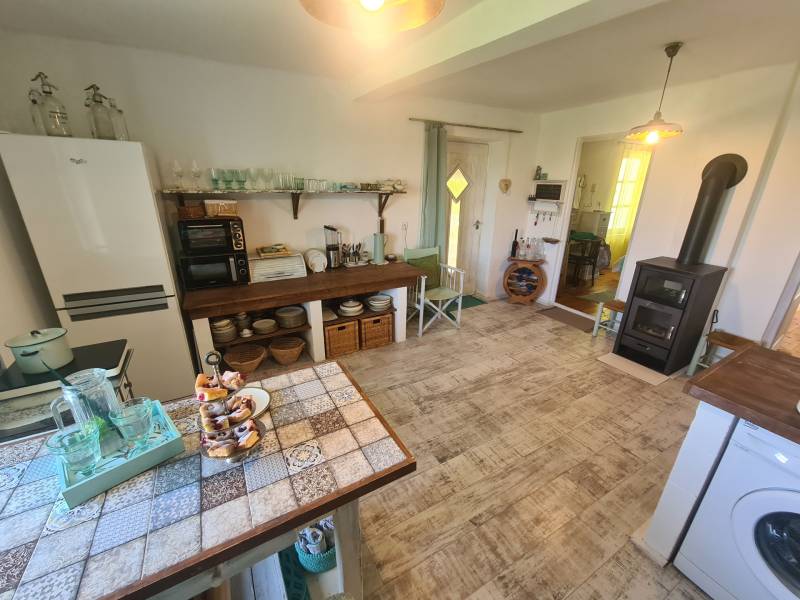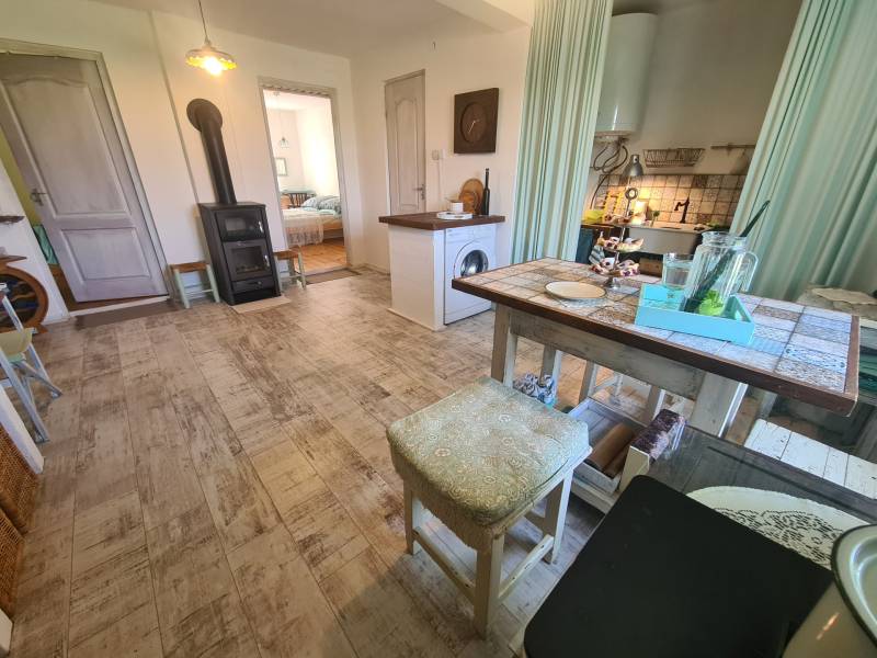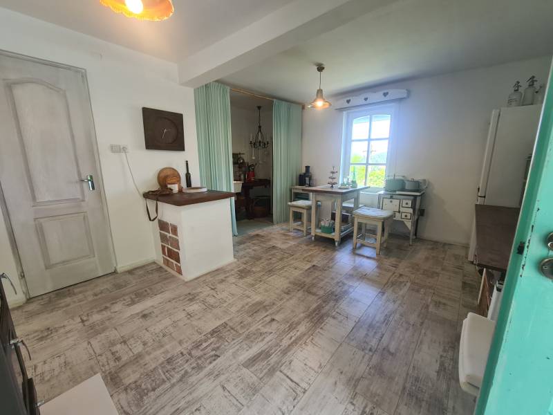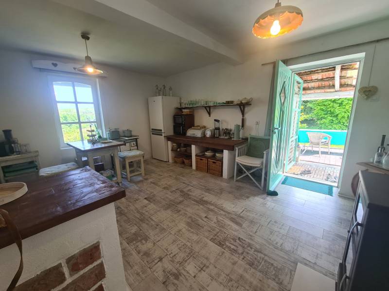 Azonnali beköltözés ill. nyaralás lehetősége a GYÖNYÖRÜ ZÖLDBENVidéki, renovált, meseszép házikó kb. 5171 m2-es belterületi panorámás tündérkert telken.Számunkra a nyaralás lehetősége volt ideális - márciustól októberig,ugyanakkor lakóház besorolása révén egész évben (is) lakható.2 hálószobában 2 felnőtt 2 gyerek vagy 4 felnőtt (nyaralási) elhelyezése biztosítottA szép, gondozott, 5171 négyzetméteres panorámás ingatlan, amelyet Zalabérben kínálunk eladásra, olyan új tulajdonos számára ideális, aki értékeli *az ingatlan központi fekvését, (a falu közepe és az élelmiszerboltok pár perc sétával is elérhetök)*a természet közelségét,*a már meglévő közművesítést*a 30 %-os beépíthetőséget*a lehetőségeket; állat tartás, mezőgazdaság, kertészet, permakultúra valamint*a telken lévö lakóház/nyaraló által biztosított azonnali beköltözés vagy bérbeadás gondolatátVAN: villany, víz, csatorna, gáz és internet az utcábanA kertben ősmagyar gyümölcsfák találhatók: alma, szilva, körte, meggy, cseresznye, dió.Termesztettünk paradicsomot, cukkinit, padlizsánt, paprikát, fizaliszt és kukoricát.A vételár magába foglalja a fotókon látható ingóságokat (bútorok, mosógép, hűtöszekrény) a kiegészítők megbeszélés tárgyát képezik.Amennyiben a képek és a leírás alapján az ingatlan felkeltette az érdeklődését, keressen bizalommal a megadott elérhetőségeken. Irodánk teljes körű, díjmentes szolgáltatást nyújt kereső ügyfeleinknek, amennyiben Önnek hitelre van szüksége, segítünk! Szakszerű tanácsadással, hitel ügyintézéssel, energetikai tanúsítvány elkészítésével és kedvező díjszabású ügyvéddel nyújtunk segítséget!