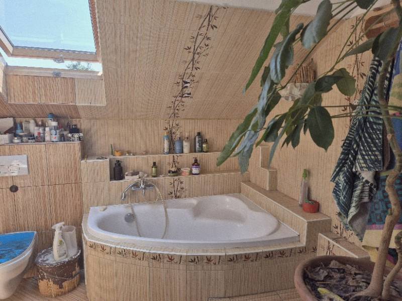 XXII. kerület csendes, zöld részén eladó egy 96 nm-es családi ház, mely egy téglalap alakú, 1405 nm-es telken található.A ház újszerű, melybe a villany, és víz van bevezetve. Gáz, és csatorna a telek előtt.A fűtésről elektromos panelek, valamint egy vízteres kandalló gondoskodik padlófűtéssel.Az utcafronti kapubejárat és a ház közötti részre könnyedén kialakítható 4 gépjárműbeálló, illetve egy nagyobb tároló is.A házba belépve az előszobán keresztül, az amerikaikonyhás nappaliba+étkezőbe érkezünk, ahonnan a hátsó kertbe a fürdőszöba melletti közlekedőn keresztül mehetünk ki.Az itt lakók kényelmét biztosítva a wc-t a lépcső mellett, külön helyiségben találjuk.Az emeleten 2 gyermekszoba, egy kádas fürdőszoba wc-vel, valamint egy szülői háló lett kialakítva. A nagyobbik szobából egy külön helyiség is elérhető, mely gardróbként vagy akár plusz egy szobaként is funkcionálhat. Az emeleti erkély mindkét helyiségből, saját ajtón keresztül megközelíthető, ahonnan páratlan, zöld, ősfás panoráma tárul elénk.A hatalmas kert, és a több irányból megközelíthető pince rengeteg teret biztosít a tárolásra.A hátsó kertben gyümölcsfák, fenyők, borókák teszik hangulatossá ezt a hatalmas területet.Közelben a dunapart és számos közlekedési, kirándulási lehetőség pár perc alatt elérhető.