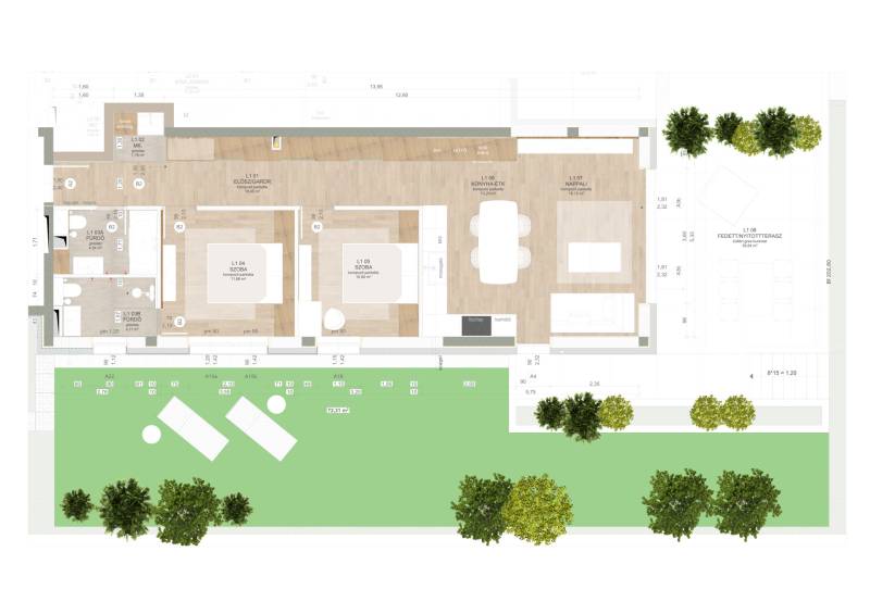 Legjobb lokáció, prémium minőség, kivételes adottságok. Üdv itthon!RÖVID ÖSSZEFOGLALÓBudapest II. kerületének Rézmál részén, új építésű társasház földszinti panorámás 81 m² -es nappali + 2 hálószobás két fürdőszobás 32 m² -es terasszal rendelkező lakás opcionálisan megvásárolható garázzsal.LOKÁCIÓA II. kerület egyik legkedveltebb részén, a Rózsadombon, a csendes és elegáns Lévay utcában épül a legújabb prémium társasház. A környék kimagasló életminőséget kínál: zöldövezeti nyugalom, kiváló levegőminőség és a városi kényelem tökéletes egyensúlya jellemzi. Mindössze néhány percnyire találhatók bevásárlási lehetőségek, kávézók és éttermek, valamint presztízsértékű iskolák és óvodák. A Mammut Bevásárlóközpont, a Millenáris Park és a Mechwart liget könnyen elérhetők, a Margit körút közelsége pedig kiváló közlekedési kapcsolatokat biztosít.LÉVAY 8Az ötlakásos társasház építése 2026 harmadik negyedévében fejeződik be, kimagasló minőségű anyagokkal és modern műszaki megoldásokkal. A projekt célja, hogy exkluzív, tágas otthonokat kínáljon azok számára, akik a természet közelségét és a nagyvonalú belső tereket egyaránt értékelik.LAKÁSAz alaprajz tökéletes egy család számára: tágas, világos, jól kihasználható terekkel rendelkezik, biztosítja a közös élményeket és a privát elvonulást is, miközben a kültéri kapcsolat a 32m² -es fedett-nyitott terasszal és a 80m² -es saját kerttel erősíti az otthon élhetőségét.- Teraszkapcsolat a nappaliból – A közvetlen kültéri kapcsolat lehetőséget ad a szabad levegőn való pihenésre, akár egy családi eseményre a nappalit összenyitva a természettel. Ez különösen előnyös gyerekekkel, hiszen biztonságos és könnyen hozzáférhető szabadtéri tér áll rendelkezésre.- Tágas közösségi tér – A nappali, étkező és konyha összefonódó kialakítása lehetővé teszi, hogy a család tagjai együtt töltsék az időt anélkül, hogy a terek túlzsúfolttá válnának. A térben eltolt konyha előnye, hogy megőrzi a kapcsolatot a nappalival, de a főzés mégsem válik zavaróvá.- Praktikus közlekedők és tárolók – A tárolóhelyek elhelyezése hatékony, segítve a rendezettség fenntartását. Az előszoba és egyéb tárolók megfelelő méretűek, így a kabátok, cipők, táskák is könnyen rendszerezhetők.MŰSZAKI MEGOLDÁSOK ÉS EXTRÁKA lakás hőszivattyús hűtés-fűtés és hővisszanyerős szellőztető rendszerrel készül, amely energiatakarékos és környezetbarát megoldást biztosít. Loxone okos otthon rendszer kerül beépítésre, fokozva a kényelmet. A nagy üvegfelületek maximális természetes fényt engednek be, míg a prémium burkolatok és belsőépítészeti részletek a legmagasabb igényeket is kielégítik. Megvásárolandó egy 24 négyzetméteres garázs + tároló melyek ára együttesen 20M Ft.ÁTADÁSA projekt várható átadása 2026 harmadik negyedévében történik.Ez az otthon ideális választás azoknak, akik egy tágas, modern és exkluzív lakásban szeretnének élni Budapest egyik legnívósabb városrészében.---------------------------------------------Díjmentes, bankfüggetlen hiteltanácsadással támogatjuk vevő ügyfeleinket a számukra legelőnyösebb finanszírozási döntések meghozatalában. Opcionálisan igénybe vehető kiegészítő szolgáltatásainkkal – mint ügyvédi közreműködés, energetikai tanúsítvány vagy villamos biztonsági felülvizsgálat – teljes körű szakmai támogatást nyújtunk az adásvétel folyamatának minden egyes lépésénél.----------------------------------------------A hirdetésben szereplő információk tájékoztató jellegűek. A tévedés és az árváltoztatás jogát fenntartjuk. Az esetleges elírásokért és technikai hibákért felelősséget nem vállalunk.