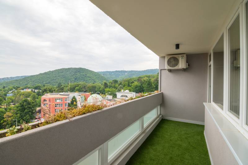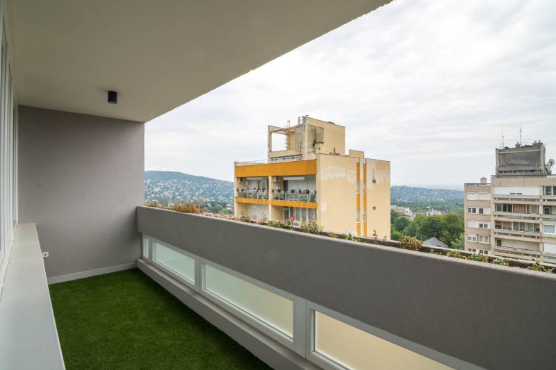 Eladó teraszos, örökpanorámás újonnan felújított lakás Kuruclesen – természetközeli luxus a város szélén.Budapest II. kerületében, a Budakeszi út egyik legkeresettebb részén, az Ökopark közvetlen szomszédságában eladásra kínálunk egy frissen és teljeskörűen felújított, 70 m²-es (tulajdoni lapon), panorámás lakást. Az ingatlan a 8. emeleten helyezkedik el, két lifttel rendelkező társasházban, azonnal költözhető állapotban. A lakás ideális választás mindazok számára, akik értékelik a természet közelségét, de nem mondanának le a kiváló infrastruktúráról sem.Az épület: Nem csúsztatott zsalus technológiával épültek, hanem hagyományos technológiával. Vasbeton pillérváz, 38-as téglával falazva. Iványi László Ybl díjas építész tervei alapján.Főbb jellemzők:* Lakás alapterülete: 70m² nettó*Terasz: 10 m², Teraszon új fix üvegszerkezetek, homlokzati falak felújítva, holland gyep. Örökpanorámás kilátással a Budai-hegyekre és az esti városi fényekre, beleértve a Parlament látványát* Elrendezés: nappali + 2 hálószoba, déli-délkeleti tájolással* Tároló: 6 m² zárt pinceszinti helyiség* Parkolás: 1 db zárt felszíni beálló a társasház kertjében* Állapot: teljeskörűen felújított, újonnan gépesített, még nem lakott* Fűtés: házközponti rendszer saját hőközponttalMűszaki tartalom és felszereltség:* Új elektromos és gépészeti rendszerek (víz-, lefolyó- és fűtésrendszer)* Prémium szaniterek: Grohe, Hansgrohe, Duravit* Klimatizált nappali és hálóhelyiség* Energiahatékony nyílászárók: 3 rétegű üvegezés (Salamander, Ug=0,6 W/m²K)* Új burkolatok: nagyméretű greslapok és laminált padló* Új homlokzati nyílászárók (Salamander 3 rétegű üveggel, Ug=0,6 W/m²K), Új beltéri ajtók* Új IKEA konyhabútor beépített Bosch és Whirlpool gépekkel (mosogatógép, sütő, főzőlap, hűtő, elszívó)* Redőny- és riasztórendszer előkészítés* LED világítás, dimmelhető lámpák, rejtett világítás* Belső wifi-hálózat kiépítésének előkészítése* KapitelefonElhelyezkedés és infrastruktúra a közelben:A lakás természetvédelmi terület mellett helyezkedik el, pár perc sétára a János-hegytől, Zugligettől és a Budakeszi Vadasparktól – ideális aktív életet élőknek, családoknak, kutyásoknak.* Lauder Javne Iskola, Külker Strand, uszoda, játszóterek* Budagyöngye Bevásárlóközpont* Lidl, Aldi, Tesco, Príma, Müller, DM (Budakeszin)* STOP SHOP (Hűvösvölgyben)Közlekedés:* 22, 22A, Volánbusz megálló 80 méterre (Budakeszi, Páty, Telki)* Széll Kálmán tér 10 perc alatt elérhető busszal vagy autóval* Gyermekvasút Szépjuhászné megálló gyalogosan is gyorsan elérhetőEz a tájékoztatás nem minősül nyilvános ajánlattételnek. Bővebb információ és megtekintés időpontja egyeztetés alapján.