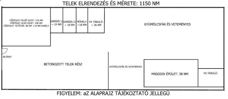 AKCIÓ! 20 MILLIÓ ÁRENGEDMÉNY! Eladó Debrecen belvárosában, a Szappanos utcában három generációs, 9 szobás, több épületből álló ingatlan extra méretű garázsokkal. Ára: 199.900.000 Ft. (régi ára: 219.900.000 Ft.)Nézze meg videónkat is: http://youtu.be/oJUR-gQeAPMAz ingatlan alap tulajdonságai:- telek méret: 1150 nm,- fő épület felső részének mérete: 116 nm+ 8 nm terasz,- fő épület alsó részének mérete: 106 nm,- fő épület tetőterének mérete: 96 nm garázs + 10 nm erkély,- második épület mérete: 58 nm+ 6 nm fedett előtér,- melléképületek mérete: 42 nm garázs + 54 nm tároló,A fő épület hasznos alapterülete 222 nm, mely kettő különálló lakrésszel rendelkezik (jelenleg is kettő család lakja).A fő épület felső részében található:- előszoba,- 3 db szoba,- fürdőszoba,- konyha + spájz,- lépcső,- folyosó.A fő épület alsó részében található:- 2 nagyszoba,- kazánház (tároló),- fürdő+WC,- folyosó,- spájz,- konyha,- előszoba,A második épület hasznos alapterülete 58 nm (+6 nm fedett előtér), melyben található:- 3 szoba,- fürdőszoba + WC,- főzőkonyha.A melléképületek sorban hozzá lettek építve a főépülethez, ezek alapterülete 85 nm melyben található:- 2 db garázs,- “műhely”,- nagy tárolóA nagy telken található egy kettő lakrészből álló főépület, amely 1986-ban épült beton alappal, 30-as tégla falazattal. A lakrészek fűtése gázcirkós kazános központi fűtéssel van megoldva. A tetőszerkezete kiváló állapotú nyeregtető, palafedéssel ellátva. A felső részen új műanyag nyílászárók találhatók, az alsóban pedig az eredeti fa. Igény esetén a tetőtér is beépíthető, amihez ki lett alakítva a lépcső. A tetőtér nagyméretű 96 nm, melyhez tartozik egy 10 nm-es erkély is. Korából adódóan mindegyik lakrészre ráfér kisebb/nagyobb felújítás. Külön bejárattal rendelkezik mind a kettő lakrész. A felső részt jelenleg albérlők lakják, az alsóban pedig a tulaj lakik. A telek hátsó részében található a második épület, melyben jelenleg nem laknak. Az épület beton alapra épült tégla falazattal. A fa födémes ház palafedéssel van ellátva. Itt is még az eredeti fa nyílászárók találhatók. Természetesen itt is ki van építve minden közmű. Ez az épület az évek folyamán kapott egy 5 nm-es szigetelést is. Az épület a telek hátsó részén helyezkedik el. A melléképületben megtalálható 2 db külön ajtóval ellátott nagyon jó állapotú garázs, de természetesen a telek betonozott részén további autóknak van hely. A melléképületekben található még egy műhely rész illetve nagyon nagy tároló rész is (természetesen mindegyik zárható). A telek végében rendelkezésre áll még pár kisebb állat tartásra is alkalmas fa épületek.A tulaj folyamatosan karbantartja a telket és ennek köszönhetően egy szép, rendezett udvart kapunk, melyen található rengeteg gyümölcsfa, szőlőskert és szépen kialakított veteményes. A telek egy furott kút is van, ami nagy segítség a locsoláshoz. Látszik, hogy hozzá értő kezekben folyamatosan művelték a telek minden egyes részét.Ez az ingatlan tényleg kiváló több generáció (akár három generáció) számára is, csak nézzük meg a több épület adta lehetőségeket, vagy akár a telek méretét tekintve. A három lakrész összesen, 280 nm + 96 nm tetőtér, ami igen impozáns méret itt a belvároshoz ilyen közel. Ami még fontos, hogy nagyon jó az ingatlan elhelyezkedése, mert bár belvárosi (Rákóczi utca környéke) mégis csendes helyen található. Nagyon szép, csendes környék, sok parkolási lehetőséggel. De ne feledjük ez egy hatalmas lehetőség befektetésnek is, ugyanis nagy telek sok épülettel a belvárosban már szinte alig van elérhető. Elhelyezkedése miatt akár albérletként kiváló lehetőség, de akár későbbi értékesítés után is megtérül az ára. 1 évvel ezelőtt egy hasonló méretű üres telek kelt el ehhez hasonló áron, itt viszont kész épületeket kapunk, tényleg a belvároshoz nagyon közel. A területet felesleges bemutatni, ez Debrecen belvárosa! Fontos!Az ingatlan per és tehermentes, 3 gyerekes CSOK Pluszra is alkalmas! Ha felkeltette érdeklődését, hívja irodánkat bizalommal! Ha hitelre van szüksége éljen ingyenes, személyre szabott hitel ügyintézési szolgáltatásunkkal is.