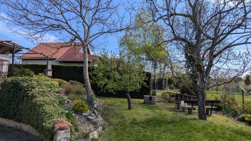 Budafok legfelkapottabb kertvárosi részén, a Tegzes utca környékén lévő, csendes kis utcában, egy 760 m²-es, saroktelken elhelyezkedő, gondosan megépített, kiváló állapotú családi ház eladó. Az ingatlan 2006-ban saját részre épült, pince + földszint kialakítású, összesen a garázzsal együtt 132 m² hasznos alapterülettel.Főbb jellemzők:-Alapterület: 132 m² (nappali + helyiségek + garázs) +25 m² terasz-Telek mérete: 760 m² – gondozott, parkosított kerttel, gyümölcsfákkal, kerti sütögetővel-Építés éve: 2006-Energetikai besorolás: DElosztás, helyiségek:-Tágas nappali-2 hálószoba + 1 félszoba (dolgozó/gardrób célra is alkalmas)-Gardróbszoba-Külön konyha + kamra-10 m²-es fürdőszoba (zuhanyzó + kád)-Külön WC -25 m²-es déli fekvésű terasz közvetlen kertkapcsolattal és sziklakerttelGépészet, extrák:-Fűtés: Gázkazán padlófűtéssel + radiátorokkal-Melegvíz ellátás: Napkollektor + melegvíz-tartály (puffertartályos rendszer)-3 db hűtő-fűtő klímaberendezés-Vízlágyító berendezés-Riasztórendszer-Műanyag nyílászárók redőnnyel, fa beltéri ajtók-Burkolatok: parketta és járólap kombináció-Hőszigetelt padlásfödém-Falazat: tégla, 10 cm külső szigeteléssel-Tető: Bramac betoncserép, sátortetős kialakítás, napkollektorral a déli oldalonParkolás, garázs:-36 m²-es, fűtött mélygarázs, elektromos garázskapukkal – akár 2 autó számára-Kerti beálló egy további autónak-Automata kapu és garázsajtókKözművek:-Teljes összközműves ellátottság: víz, villany, gáz, csatorna -Elektromos kapu és riasztó rendszerKiváló közlekedés: Mindössze 10 perc alatt elérhető Kelenföld vasútállomás és a 4-es metró végállomása, így a város bármely pontja könnyen megközelíthető. Autóval több útvonalon keresztül is gyorsan elérhető a belváros, míg az Allee bevásárlóközpont és a budaörsi nagyáruházak mindössze 10–15 perces autóútra találhatók. Közelben lévő buszjáratok: 150, 150B, 250, 250B, 251, 251A, 251BEz a Budafok kertvárosi részén található ingatlan tökéletes választás családok számára, akik minőségi kivitelezésű, jól megtervezett otthont keresnek nyugodt környezetben, mégis kiváló közlekedéssel és infrastruktúrával.Ne hagyja ki ezt a remek lehetőséget – tekintse meg személyesen is!