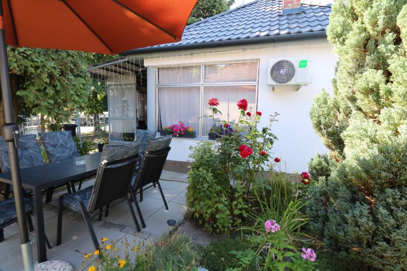 Irodánk eladásra kínál Siófok belvárosában egy 137 nm-es hasznos alapterületű (bruttó 197 nm) felújított ingatlant. A ház két külön bejáratú egységből áll, melyek közül az első kb. a 70-es években épült, hasznos alapterülete 61 nm, melyet egy fedett és három oldalról zárt 5,92 nm-es teraszon keresztül lehet megközelíteni, belépve egy 9,98 nm-es nappaliban találjuk magunkat, ahonnan balra egy 16 nm-es szoba nyílik, előre egy fürdő és külön WC található, ugyancsak balra egy 7,5 nm-es konyha, amiből a második szoba nyílik, ami 15,76 nm-es. Ennek az épületrésznek a fűtése gázkonvektorral van megoldva, valamint egy hűtő-fűtő klíma is be van szerelve. A hátsó rész 2000-ben épült, melybe egy szélfogón át lépünk be egy 6,65 nm-es előszobába, jobbra egy fürdőt találunk WC-vel, jobbra előre egy 12,94 nm-es szobát előre egy 6,56 nm-es konyhát, balra előre egy 13,16 nm-es szobát találunk. A bejárattól rögtön balra van a 3,39 nm-es gardrób. Ennek az egységnek a fűtése gáz cirkóval van megoldva, valamint ide is be van szerelve egy hűtő-fűtő klíma.A hátsó épületrész egybeépült az elsővel, de jelenleg nem átjárható, azonban össze lehet nyitni a két részt, régen is volt egy ajtó. A tető nemrég divatos antracit színű cserepes lemez héjazatot kapott. Falazata tégla, részben szigetelt, tört fehér nemes vakolattal. A nyílászárók egy része fa (geréb tokos), egy része pedig hőszigetelt műanyag.A 826 nm-es telken két melléképület is áll, melyek egyikében eredetileg egy nyári konyha található, de a jelenlegi tulajdonos egy teljes értékű szobának rendezte be. Ezen kívül rengeteg pakolásra alkalmas raktár található, valamint egy boltíves tégla falazatú hangulatos pince. Eredetileg bor tárolására használták, a telken több tő szőlő van, aki a bort szereti, itt kedvére borászkodhat. Az udvaron fúrt kút található, melyre szivattyú van kötve, ez biztosítja a kert üdeségét.Ez az ingatlan egyaránt alkalmas két generáció békés együttélésére, vagy nagy családnak (egybe nyitva), de hosszú, vagy rövidtávú kiadásra hasznosítható. Ráadásul a város nagyon jó részén található, egy kedvelt csendes kis utcában. A Fő tér 1000 m-re, a Plázs 1700 m-re található.Kérdésével, vagy megtekintési igényével kapcsolatban keressen valamelyik elérhetőségemen, akár hétvégén is.