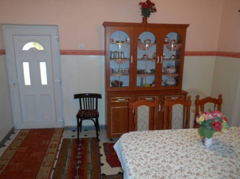 Megvételre kínálok Dögében, csendes mellékutcában, egy 1978 -ban szilikátból épült, cserepes lemezzel két éve átfedett fedett családi házat, 1079 nm-es, 16 méter széles telken. A részben alápincézett, jó állapotú ingatlan három szobáját keményfa parkettával, az előszobát pvc -vel, a külön wc -t, a fürdőszobát, a közlekedőt, valamint a konyha-étkezőt járólappal burkolták. Az nyílászárók még az eredetiek, fából készültek, (az egyik bejárati ajtó, a wc, és a fürdőszoba ablaka már hőszigetelt műanyag), az ablakokat redőnnyel szerelték fel. A melegről gáz konvektorok gondoskodnak, de található az ingatlanban három cserépkályha is. Az udvaron alumínium lemezből készült garázs , kamra-tároló, a kertben egy további, hullámlemezből készült tároló található. A vételár tartalmazza a bútorzatot nagy részét is.Döge eladó családi házAz ingatlanról készült videó megtekinthető: http://youtu.be/l5EmQQ9cWU4