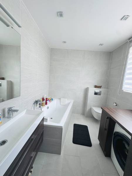 Debrecen egyik legkeresettebb kertvárosi részén, a Hatvan utcai-kertben, egy különleges adottságú ingatlan várja új tulajdonosát! A 2018-ban épült, háromszintes, nappali + 5 szobás sorházi ingatlan közel 300 m² saját kerttel rendelkezik, amely a nappaliból és az utcáról is könnyedén megközelíthető.Jellemzők:- nettó 153nm alapterület- nappali+ 5 szoba- gázcirkó fűtés padló/radiátor- Bosch tárolós gázkazán- Bosch beépített konyha gépek- minden szoba klímatizált- központi porszívó- elektromos redőnyök- 266nm saját kert- kerti konyha, filagória- Hidropool medence- tetőterasz- minőségi burkolatok/beépített bútorokA ház társasházzá van nyilvánítva, és a hozzá tartozó hatalmas közös kert (kb. 2500 m²) csodás zöld környezetet biztosít, amelyet egy kertész folyamatosan gondoz.Ha felkeltette érdeklődését, kérem hívjon bátran, és szívesen bemutatom Önnek ezt a valóban egyedi lehetőséget!