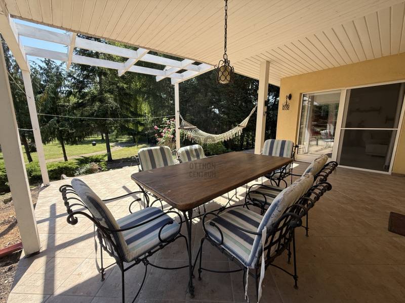 Csak Nálunk, csak az OTTHON CENTRUMNÁL kínálom eladásra a képeken látható Rábapatonai családi házat.Ha igazán egyedi lehetőségekre vágysz! Varázslatos környezetben, domb tetején családi ház, tóra néző kilátással.És még a vállalkozásod is könnyen elfér az otthonodban, akkor most jól figyelj, mert ez a ház lehet hogy Neked szól.- 1600 m2-es telek- 90 m2-es lakótér + terasz + alagsor ami akár orvosi rendelőnek, kozmetikának, üzemnek vagy bármi új üzlet nyitására alkalmas!Vagy akár lakrész is kialakítható belőle, minden lehetőség adott! - a ház 1 hálószobával rendelkezik amihez tartozik egy fürdő illetve gardrób is.- kiváló elrendezés, világos terek- a nappaliból és a konyhából kijutunk a napsütötte teraszra, amiről télen nyáron páratlan kilátás nyílik a tóra és a mesés, impozáns telekre - klimatizált- az otthon melegét padlófűtés biztosítja- modern, műszaki kivitelezés miatt a ház fenntartása nagyon minimális- elektromos kapu- meseszerű, parkosított udvarA ház kiváló állapotú, ráfordítás mentesen azonnal költözhető, birtokba vehető!Ha szeretnéd érezni a természet közelségét ebben a szép és élhető terekkel rendelkező családi házban, hívj és mutatom, elérhető vagyok a hét mindennapján!Hitelre van szüksége?Az Otthon Centrum az ország egyik legnagyobb és legmegbízhatóbb hitelközvetítőjeként,teljes körű és díjmentes hitelügyintézéssel, biztosításkötéssel áll rendelkezésére!Kérje személyre szabott ajánlatunkat Kollégáinktól!
