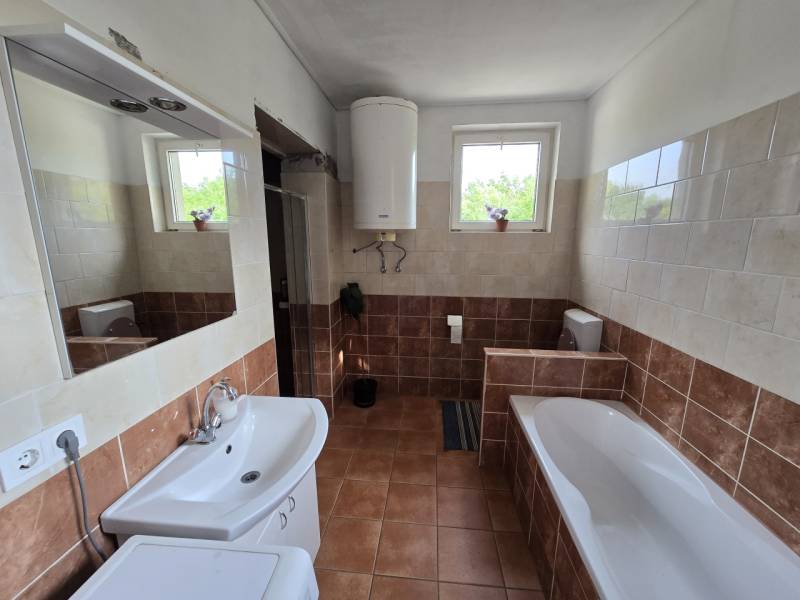 Felújított, tágas családi ház két telekkel Madaras központjához közel – 15.500.000.Ft irányáronMadaras település csendes, jól megközelíthető részén, a falu központjától alig pár lépésre kínálunk megvételre egy masszív, téglaépítésű családi házat, mely nemcsak tágas életterével, hanem két telek egyesítéséből adódó hatalmas udvarával is kivételes lehetőséget kínál – 16 millió forint irányáron.A ház kb. 1980-ban épült, hasznos alapterülete 105 m², a szerkezete tégla, és jelenlegi kialakítás szerint három szoba, egy nagyobb méretű konyha–étkező, előszoba, tágas folyosó, valamint két fürdőhelyiség is helyet kapott benne.A szobák tágasak és világosak, az első kettő parkettás, a többi helyiség hidegburkolattal ellátott. A ház egyik kiemelkedő része a több mint 10 m²-es, teljesen újonnan kialakított fürdőszoba, ahol a burkolatok, vízvezetékek, zuhanyzó és kád is teljesen újak. Emellett egy második fürdőhelyiség is rendelkezésre áll.Műszaki adatok, közművek:– Villamos hálózat 2018-ban teljesen felújítva, háromfázisú rendszer.– Fűtés kandallóval történik.– Meleg víz ellátás villanybojlerrel.– Műanyag nyílászárók kerültek beépítésre.– Cserépfedésű tető.Telek, elhelyezkedés és extrák:– Alaptelek mérete: 1285 m².– Ajándékba járó, hozzácsatolható szomszédos telekrész: több mint 1000 m².– Így az összesen elérhető telekterület meghaladja a 2200 m²-t, mely kiválóan alkalmas állattartásra, kertművelésre vagy akár vállalkozásra.– Saját garázs biztosítja a kényelmes parkolást.– A buszmegálló mindössze 100 méterre található, a falu központja pedig pár perces sétával elérhető.Ez az ingatlan különösen ajánlott azoknak, akik vidéki nyugalomra, ugyanakkor tágas, jól alakítható élettérre vágynak, akár plusz földterülettel bővített lehetőségekkel.Az adásvétel lebonyolításához teljes banki ügyintézéssel, jogi tanácsadással, azonnali ügyvédi közreműködéssel, szükség esetén soron kívüli földhivatali eljárással, biztosítási termékekkel, valamint az ingatlan felújításához szükséges szakértő mesterek teljes palettájával állok rendelkezésedre.Az ingatlan felújításához szakértő partnereink ingyenes felmérést és részletes árajánlatot készítenek ön számára.Nálam a bankok és a biztosítók érted versenyeznek!Amennyiben az ingatlan megvásárlásához el szeretné adni a jelenleg meglévő ingatlanát, ennek lebonyolításában is állunk rendelkezésére.