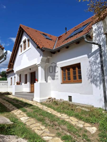 A \" fészekalja \" faluként is ismert, Kapolcs mellett található Pula történelmére és építészetére az Esterházy család által betelepített sváb lakosok voltak hatással.Szerencsés elhelyezkedésének köszönhetően a környező nagyobb városok ( Veszprém,Tapolca, Ajka ) és a Balaton is kb. 20 perc alatt elérhető.A falu központjában vált eladóvá ez az otthonos és minden igényt kielégítő ingatlan, gazdálkodásra is alkalmas telekkel melynek végén az Eger- patak csorgadozik.KIEMELT MEGBÍZÁS AZ OTTHON CENTRUM KÍNÁLATÁBAN!A LAKÓHÁZ hagyományos építési móddal, tégla és terméskő falazattal, pince, földszint és tetőtér tagolódással épült.A népi építészeti jegyeit és stílusát tiszteletben tartó lakóházba az épület nyugati homlokzata felőli bejáraton juthatunk be.- 2021- től teljes külső és belső felújítás és tetőtéri bővítés valósult meg ( víz- , villany- és csatornavezetékek cseréje, tetőcsere, új fűtés és nyílászárók stb. )- a földszint és a tetőtér brutto 160 m2, kiegészülve a pincével- a fölszint központi helyisége a konyha- étkező csehsüveg boltozattal - a nappali, a háló, a fürdő és a mosókonyha fafödémmel készült- a tetőtérben kettő hálószoba, gardrób és egy második fürdő került kialakításra- a fűtést és a melegvizet gázkazán biztosítja- a földszinti központi helyiségekben padlófűtéssel, másutt radiátorokkal + cserépkályha- helyi asztalos által készültek ( kétrétegű üveggel, az utcafronton hangszigeteléssel ) a nyílászárók, zsalugáterek és a kapuk- a házat napfényes, nagy légterű helyiségek jellemzik- 3 fázis bevezetveA 15 m2- es NYÁRI KONYHA 1920- ban épült, a lakóházzal azonos megjelenésű, homlokzata igényesen felújított.Ha beljebb megyünk a kertben, leérünk a külön lakrészből (19 m2) és pajtából (34,5) álló VENDÉGHÁZHOZ.Szemben egy hangulatos pergola alatt pihenhetünk. Kicsit lejebb a felső udvarrészt lezáró kerítéshez érkezünk, innen kezdődik a veteményesnek vagy gyümölcsösnek alkalmas KERT, mely biogazdálkodásra is alkalmas.De biztos hogy sokszor le fogunk ide sétálni, hiszen a telek végét határoló PATAK megnyugtató, varázslatos hangulata és a környező dombok panorámája teljes kikapcsolódást biztosít rohanó mindennapjainkból.Ha a képek visszaadták az ingatlan hangulatát és sikerült felkeltenem érdeklődését, kérdése merült fel vagy szeretne időpontot egyeztetni...VÁROM MEGTISZTELŐ HÍVÁSÁT A MEGADOTT ELÉRHETŐSÉGEKEN !