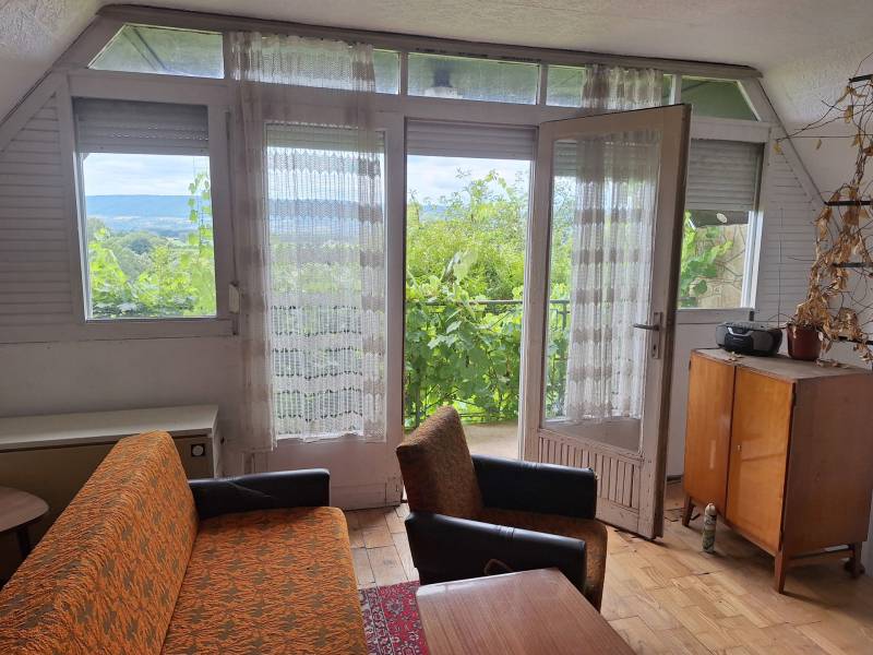 Hegymagason, forgalmas főút mellett, jól megközelíthető helyen kínálunk eladásra egy kétszintes, 74 m²-es nyaralót, 1000 m²-es telken.Az ingatlan elosztása kiváló:3 hálószoba2 nappalikonyha és kamrafürdőszoba + külön WC kézmosóvalerkély, ahonnan részleges kilátás nyílik a Balatonra és a hegyekreMűszaki jellemzők:Víz és villany bekötve, szennyvíz elvezetése derítővel megoldottFúrt kút a kert locsolásáhozFűtés villanykályhával vagy hagyományos kályhávalFa nyílászárókA telek teraszos elrendezésének köszönhetően, több részen is található kiülőnek, vagy kerti tevékenységnek alkalmas hely.Egy pince és egy garázs, valamint további melléképületek is megtalálhatók.Az ingatlan egy összesen 2759 m2 nagyságú osztatlan közös telken fekszik, melyből az 1000 m2 nagyságú telek és a rajta lévő ingatlan eladó.Kifüggesztésköteles.Az elhelyezkedése miatt nyaralónak vagy kiadási célra is jó választás.Ne maradjon le erről a sokoldalúan hasznosítható ingatlanról – keressen bizalommal a megtekintésért!