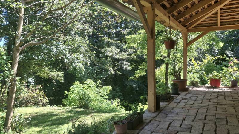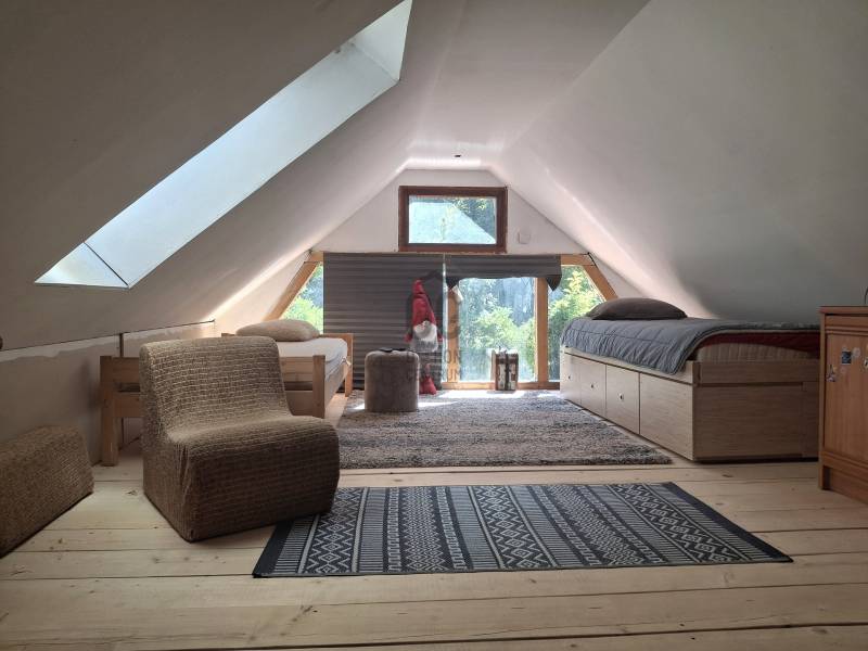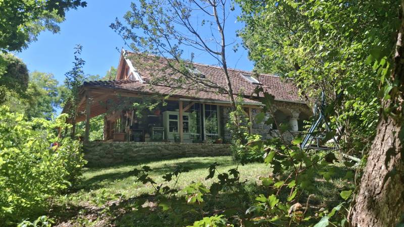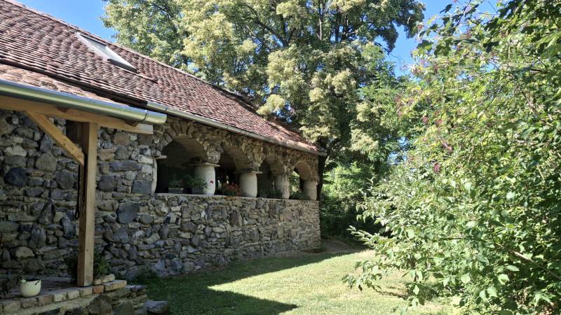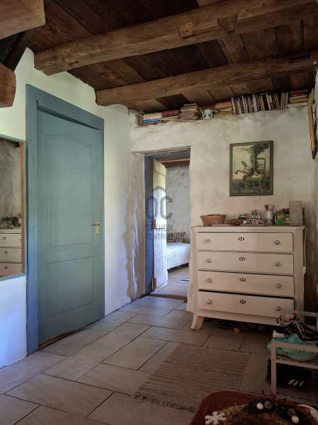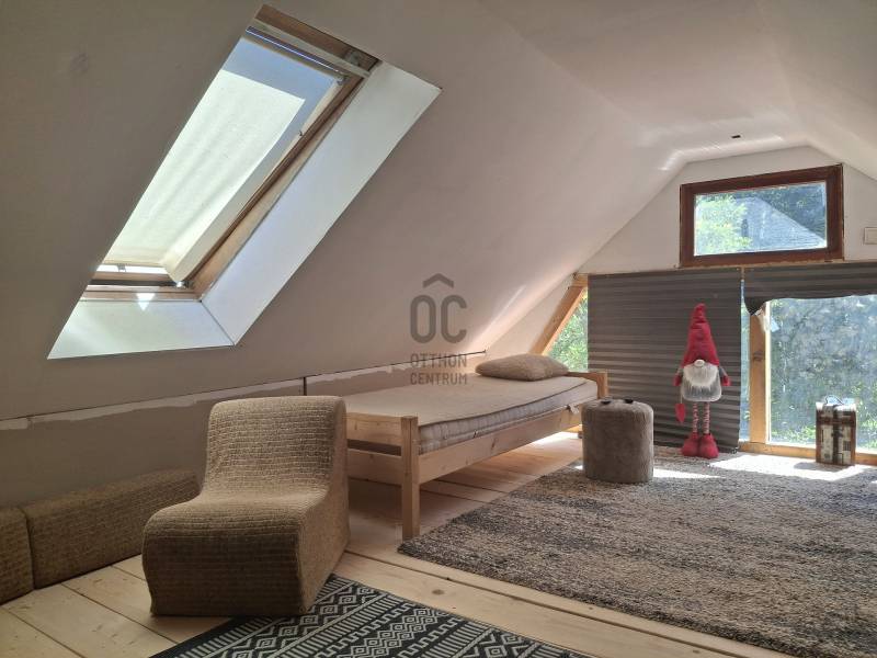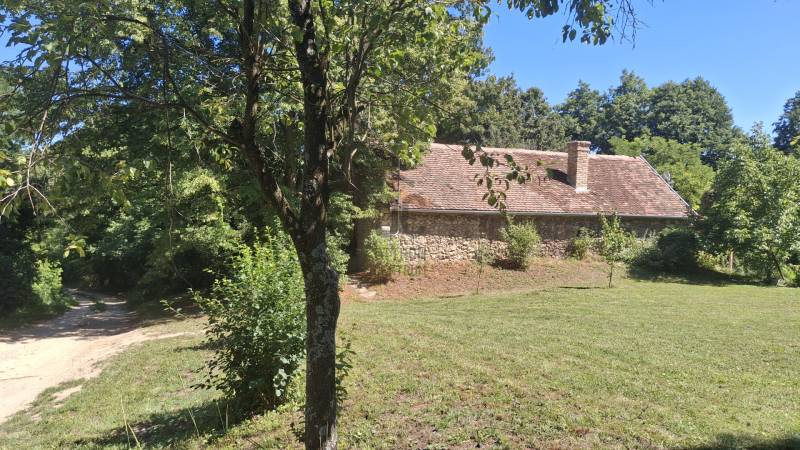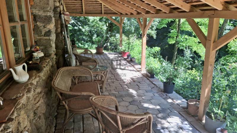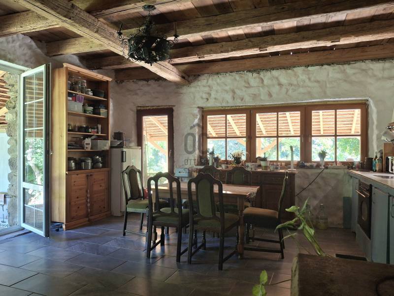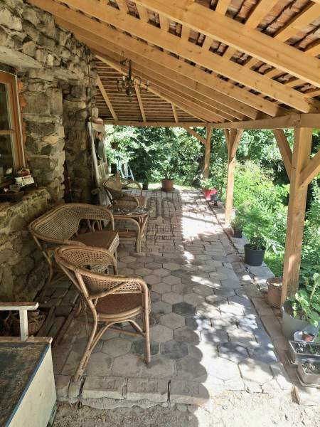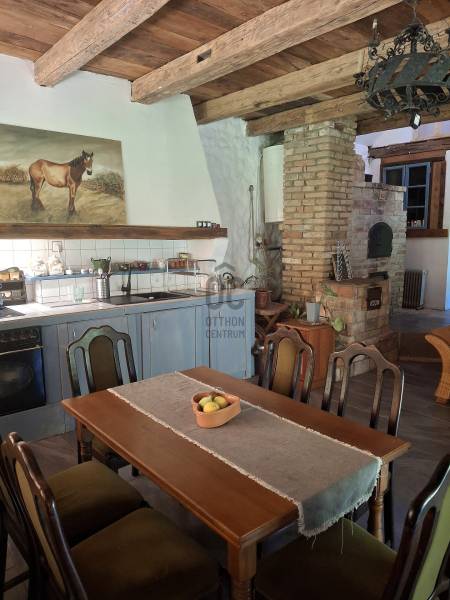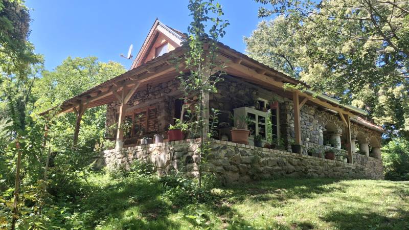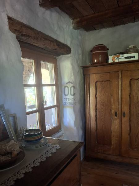 A MŰVÉSZETEK VÖLGYÉBEN ( Dörögdi medence ), Taliándörögdön ajánlok figyelmébe egy erdővel és patakkal övezett mézeskalács házikót.Varázslatos és mai rohanó világunkban lelassulást nyújtó, a területen keresztül húzódó Ley energiavonal mellett.A régi romos épületet az elmúlt években bazaltkőből, az alapoktól kezde újraépítették.Egyedi, a természetbe simuló megjelenése teszi különlegessé a házikót.Két bejárattal rendelkezik: az utcafront felöl a tornácon kersztül és a teraszról is beléphetünk.A fafödémes alsó szinten a konyha- étkező mellett egy fürdő és egy hálószoba került kialakításra.A szigetelt tetőtér is beépítésre került, jelenleg egy légterű.Alacsonyobb belmagassága miatt hálónak használható.A ház alapterülete 65 m2, de a nagyméretű terasz szintén fontos szerepet játszik az ittlétben. A villany és a csatorna bekötve, a vizet házi vízmű biztosítja.A fűtését a vízteres téglakályha biztosítja padlófűtéssel. De a konyhában is fontos szerepe van, hiszen egy kemence és egy sparhelt is ki lett alakítva.Belterületi ingatlan, megközelítése az utolsó pár száz méteren földúton történik.A telek mérete 3600 m2. A ház háta mögött veteményeskert és egy nagy füves terület található.Itt könnyen parkolhatunk vagy további gyümölcsfákat ültethetünk.De a telek további része az oka annak, hogy rabul ejtsen minket a hely.A telket határoló patak, az erdőben található kisebb szurdokok, a fák között átszűrödő napfény...Ezt kihasználva egy kb. 60 m2-es fa terasz állítottak fel a legmeredekebb részre,a patak medre fölé.Elhelyezhetünk itt nyugágyakat, dézsa fürdőt vagy fogadhatjuk barátainkat egy vacsorára, de akár egy jurtának is helyet adhat.Ha sikerült felkeltenem érdeklődését, jöjjön el és tekintse meg személyesen!Várom megtisztelő hívását a megadott elérhetőségeken!