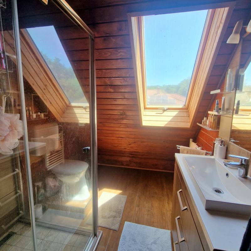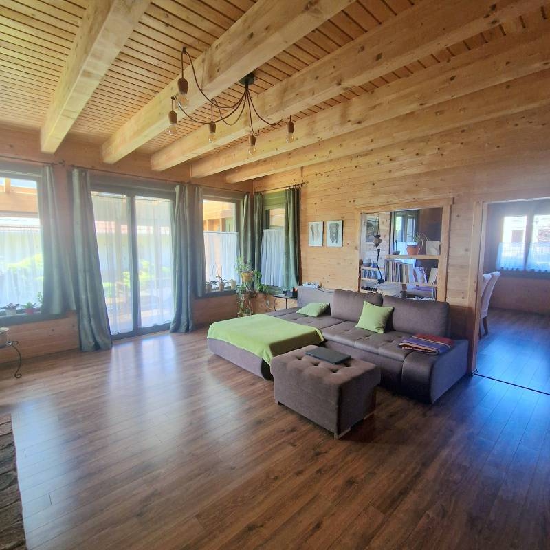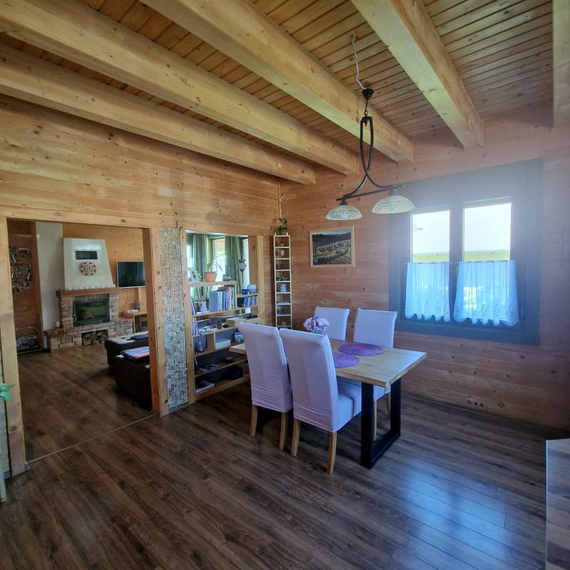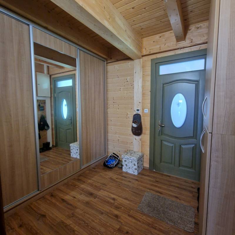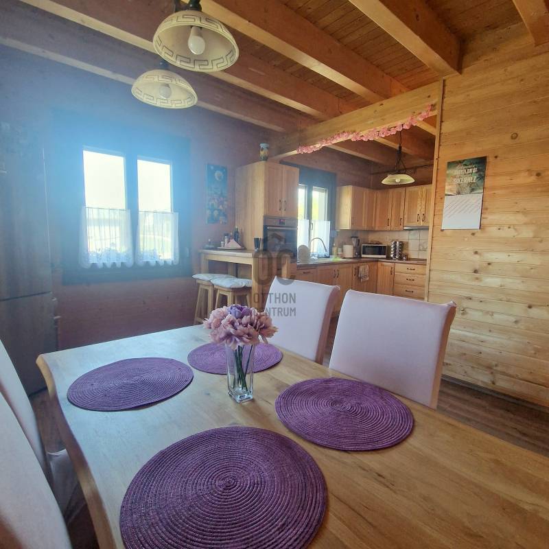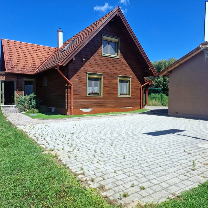 Szerelem első látásra? Zalaegerszegtől mindössze 9 km-re, Nagypáli lakóparkjában eladóvá vált egy 792 nm-es teleken elhelyezkedő 2006-ban épült, 138 nm-es, két szintes gerendaház! A ház minőségi anyagokból és képzett szakemberek által épült. Az ott lakók kényelmét a földszinten egy igényes, gépekkel felszerelt konyha-étkező+kamra, tágas nappali, 2 szoba, fürdőszoba, külön mellékhelyiség kézmosóval, mosókonyha, előszoba, fedett terasz, míg az emeleten 1szoba +1 lakosztály (fürdőszoba, gardrób, hálószoba) és egy különálló gardrób biztosítja.A tágas nappaliból lehet kimenni a fedett teraszra, ami egyetlen mozdulattal téliesíthető. Ide egy ajtón át is be lehet jönni az udvarról, és ha van házi kedvenc, akkor ő is tudja használni a rajta lévő kutya ajtót.A házon és házban található összes nyílászáró, illetve a ház belső burkolata 7 éve került felújításra, ahogy a kőrisfából készült egyedi konyhabútor és terasz is.A nyílászárók Remmers (német) felületkezelt lucfenyőből készültek olíva zöld színben. Az ablakokon redőny és szúnyogháló is található.A család autói a dupla, fűthető garázsban pihennek, ahová egy fedett kocsibeállón keresztül lehet bejutni. Így eső esetén is szárazak maradhatunk.A garázs tetején 35 db napelem található, melyek biztosítják, hogy a fűtésszámla garantáltan alacsony maradjon. A garázs mögött található még egy fedett pihenő és grillező sarok.A házban télen a meleget infrafűtés biztosítja, de a nappaliban egy fa tüzelésű kandalló is található.Az udvaron található még egy normál méretű lebetonozott kosárpalánk, a sport szerelmeseinek.A házi kedvencnek pedig külön lakosztálya van az udvaron, egy félig fedett kennel, hőszigetelt kutyaházzal és füvesített, zárt, zárható kifutóval.A terület három oldalról 3D-és kerítéssel van körbe kerítve, az utca frontról pedig kő és kovácsoltvas kerítés nyújt biztonságot. Az autók által használt kapu elektromos, ahogy a garázs kapuja is.A házon kiépített kamera rendszer található.Az ingatlan per és tehermentes, teljes kifizetést követően új tulajdonosa nevére kerülhet. A kormány által nyújtott új 3%-os kedvezményes hitel igénybe vehető az ingatlanra.Amennyiben az ingatlan felkeltette érdeklődést keressen bizalommal!
