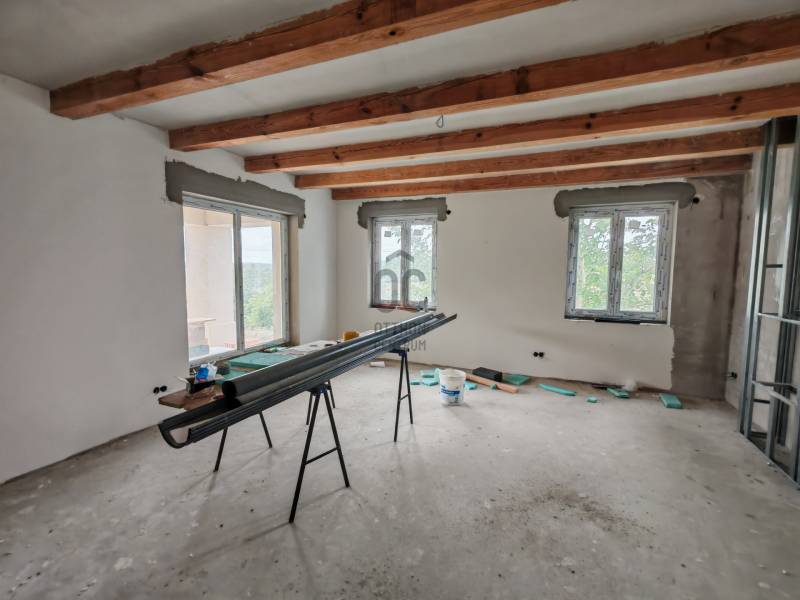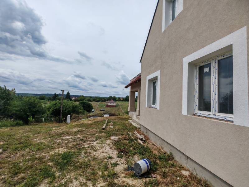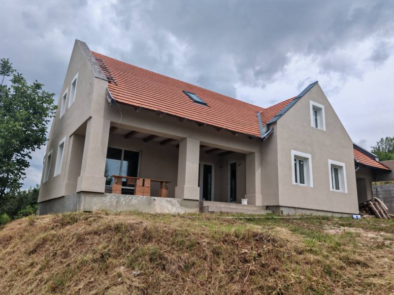 Cserszegtomaj csendes, forgalomtól mentes zöldövezeti részén az erdő mellett eladó egy újépítésü családi ház. Az épül kétszintes, amerikai konyha nappalival + 5 hálóval 3 fürdőszobával gardróbbal mosókonyhával kamrával rendelkezik.A 2700 négyzetméteres telken nettó 252 m²-es családi ház, amely ideális a nagycsaládosoknakA Balaton keszthelyi partszakaszától és Hévíztől néhány percre található.A tagolt nyeregtetős ház korszerű technológiákkal, energiatakarékosmegoldásokkal és modern nyílászárókkal elektromos redőnyökkel felszereltA földszinten akadálymentes szobák és fürdő is található. A tágas amerikai konyhás nappalihozfedett terasz kapcsolódik.Összesen 5 kényelmes hálószoba biztosítja a lakók kényelmét.A földszinti helyiségek átgondolt elrendezésűek: az előtéren keresztül jutunk be, ahonnan aközlekedő nyílik, balra a nappali–étkező–konyha zóna, kamrával.A hálórészben két szoba, fürdőszoba, tároló és közösségi tér kapott helyet. Innen indul azemeletre vezető, még kiépítésre váró lépcső.Fent további két hálószoba, 2 fürdőszoba, mosókonyha és közlekedő található.A házhoz két terasz tartozik: az egyik fedett, nappaliból nyíló, panorámás a környékre a másik pedig privát, az egyikföldszinti szobából elérhető.Az ingatlan jelenleg 75%-os készültségű.A kivitelezési tervek szauna és jacuzzi beépítését is lehetővé teszik.a teljes burkolat rendelkezésre állnak, amit egy jó izlésü szakmáját szerető lakberendező keze munkáját dícséri. A 2700 m²-es, enyhén lejtős telken 79% zöldfelület található, ideális kertészkedésre, pihenésrevagy játékra. A ház mögött zárt, belső átriumos udvar alakítható ki.A kert végleges kialakítása még földmunkát igényel.A tervek szerint a telek alján 5 gépkocsi számára alkalmas parkoló létesül.További információkért kérem hívjon!