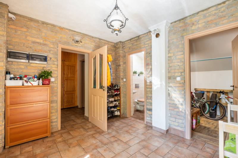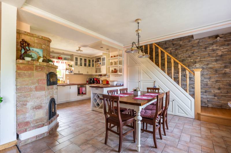 Fedezze fel álmai otthonát Göd szívében – 6 szobás családi ház várja Önt!Eladó Kétszintes Családi Ház Felsőgödön – A Nyugalom SzigeteFelsőgöd csendes, békés részén eladó egy teljes körűen, minőségi alapanyagokkal felújított, kétszintes családi ház, melynek kialakításánál a tulajdonos fő szempontja az élhető terek megteremtése volt. Ez az otthon valóban a nyugalom szigete, ideális választás azoknak, akik a város zajától távol, mégis jó lokációval rendelkező ingatlanra vágynak. Nagycsaládosok és összeköltözők figyelmébe ajánljuk!A ház nettó 210 nm alapterületű, melyben hat szoba és két fürdőszoba kapott helyet, így akár két generáció kényelmes együttélésére is tökéletesen alkalmas. A parkosított 464 nm-es telek garantálja a privát szférát és a pihenés lehetőségét a szabadban.Az ingatlan rezsiköltsége rendkívül kedvező, köszönhetően a modern napelemes rendszernek. A kényelmet tovább növeli a beépített klíma és a házhoz tartozó erkély. A parkolásról nyitott kocsi beálló gondoskodik.Fontosabb műszaki paraméterek:•Bosch kondenzáció gázkazán melegvíztárolóval, minden helyiségben radiátoros fűtés•akkumulátoros napelemrendszer 5 KW SolarEdge hibrid inverter (napelemenkénti optimalizálást tesz lehetővé a legnagyobb teljesítmény elérése érdekében),•2 új fürdőszoba – a földszinten zuhanyzós, épített bútorral / emeleten kádas; földszinten + külön wc•hangulatos télikert•épített samott téglás kályha a földszinten,•10cm-es homlokzatszigetelés a teljes házon,•zsindelytető - tetőfedés teljes cseréje megtörtént,•padláson hőszigetelő lapok,•Gree split klíma minden emeleti szobában,•3 fázisú villanyóra,•kamera és riasztórendszer,•vízlágyító berendezés a vízhálózaton,•elektromos gépkocsikapu,•fúrt kút,•automata öntözőrendszer,•gépészet külön hátsó helyiségben,•nagy tároló a lakótértől elkülönítetten (pld. szerszámoknak)Ne maradjon le erről a kivételes lehetőségről! Tekintse meg személyesen, és tapasztalja meg ennek az otthonnak a különleges hangulatát!