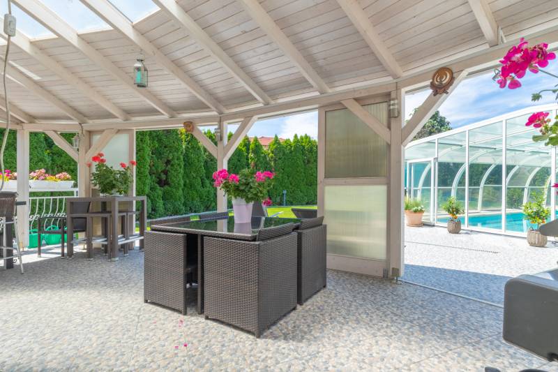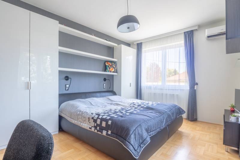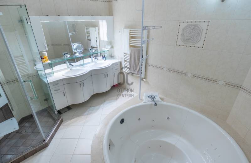 Új tulajdonosát keresi Páty kedvelt részén egy önálló, tégla építésű, akár két generáció együttélésére is alkalmas családi ház, mely 2002-ben épült, nettó 285, bruttó 345 négyzetméteres alapterülettel, 966 m2-es, szépen gondozott, privát kert veszi körül, medencével, két állásos garázzsal és további két autóbeállóval. Ha igényesen kivitelezett, különleges házat és modern, de meghitt életteret keres családja számára ezt a házat feltétlenül nézze meg!KÖRNYÉK ÉS KÖZLEKEDÉS:- Páty a Zsámbéki-medence délkeleti peremén fekszik, családok, csendes életre vágyók és vidéki-ligetes hangulatot keresők által különösen kedvelt település.- Budapesttől kb. 20–25 km-re helyezkedik el, az M1 es autópálya mellett.- A ház Pátykert városrész egyik zsákutcájában található, kertvárosi környezetben, nyugodt, folyamatosan fejlődő, meseszép településen.- Közelben van zöld terület, adott a tiszta a levegő, a barátságos környezet, jó a közbiztonság és a közlekedés.- Iskolák, óvodák, bölcsődék, boltok kényelmesen elérhető távolságban vannak.- A szomszédok kedves, barátságos emberek, figyelmesek egymással.- Tömegközlekedési eszközök 10 perc séta távolságban elérhetőek.- A környező hegyvidékek – például Nagy Kopasz – túraútvonalaival ideális a kikapcsolódáshoz.- A Sasfészek tó tanösvénye vízimadár megfigyeléssel várja a látogatókat, kellemes piknikezési lehetőségekkel.A HÁZ ÁLTALÁNOS JELLEMZŐI:- 2002-ben, 966 m2-es parkosított telekre épült, MINDEN IGÉNYT KIELÉGÍTŐ épület.- 38 cm Porotherm téglából épült, 12 cm szigetelést kapott, monolit vasbeton födémmel ellátott.- A telek kelet-nyugati tájolású, az utcafront szélessége 18 méter.- A ház kiváló adottságú, átgondoltan tervezett, MAGAS MINŐSÉGŰ anyagokkal kivitelezett.- A 2 szintes, 6 szobás épület alapterülete nettó 285 m2, bruttó 345 m2-es.- A földszinten 191 m2 élettér áll rendelkezésre, amely két jól elszeparált részből tevődik össze. - Jobb oldalon a ház központi része, a közel 90 m2-es, egész nap FÉNYÁRBAN ÚSZÓ amerikai konyhás nappali és étkező található, ahol egy különleges építészeti megoldással kialakított FELÜLVILÁGÍTÓ KUPOLA természetes fénnyel árasztja el a helyiséget, továbbá egy szoba is megtalálható.- Bal oldalon helyezkedik el szülői hálószoba, gardróbbal, külön fürdőszobával, továbbá három szoba és egy fürdőszoba mellékhelyiséggel, így biztosítva a család teljes nyugalmát. - A minőségi kivitelezésnek köszönhetően a műszaki állapota kiváló.- A modern belső tér hangulatát az IGÉNYES BURKOLATOK és a hatalmas üvegfelületek határozzák meg.- A Rehau műanyag nyílászárók hőszigetelő üvegezéssel lettek ellátva, belső nyílászárók fa szerkezetűek.- A Weishaupt kondenzációs gáz fűtési rendszer biztosítja a megfelelő hőmérsékletet és a meleg vizet. - Égéstermék elvezetéséhez Schiedel kéményeket alkalmaztak, a ház hűtését klíma biztosítja.- Az igényesen kialakított, privát, PARKOSÍTOTT KERT mellett egész évben használható FEDETT MEDENCE szolgálja a kényelmet.- Az alsó szinten található KÉT ÁLLÁSOS GARÁZS mellett, további két nyitott autóbeállási lehetőség van.AZ ALSÓ SZINT FELOSZTÁSA:- kazánház mosókonyhával,- SZAUNA fürdőszobával,- külön mellékhelyiség,- KONDITEREM és közösségi tér amely teljesértékű ablakkal ellátott, kapcsolódik a garázshoz és a belső lépcsőn keresztül megközelíthető földszinti lakótérhez.- ez a szint alkalmassá teszi a házat több generáció együttélésére is. FÖLDSZINT FELOSZTÁSA:- a keleti oldalon található a SZÜLŐI HÁLÓSZOBA GARDRÓBBAL és saját fürdőszobával,- további 4 hálószoba,- fürdőszoba zuhanyzóval, JAKUZZIVAL és mellékhelyiséggel,- a nyugati oldalon található a közel 90 m2-es amerikai konyhás nappali étkezővel,- FEDETT TERASZ medence és kert kapcsolattal.FENNTARTÁSI KÖLTSÉGEK:- A ház magas minőségben épült, műszaki állapota kiváló, a Weishaupt fűtési rendszernek és nyílászáróinak köszönhetően a gáz költsége nagyságrendileg 30.000.- Ft.- A vízdíj medence használatával együtt 15-20.000.- Ft, az áram 20-30.000.- Ft között, fogyasztás alapján számolható. AZ INGATLAN MEGTEKINTHETŐ:- VIDEÓN,- személyesen,- online személyes bejelentkezéssel.FINANSZÍROZÁSBAN (AKÁR ONLINE IS) SEGÍTÜNK:- Bank-független hitelcenterünk díjmentesen versenyezteti az összes hazai bank és hitelintézet ajánlatát.- Önnek annyi a dolga, hogy egyeztet kollégáinkkal, majd a személyre szabott ajánlatok közül kiválasztja a hosszú távon is legkedvezőbb konstrukciót.- Szakértőink több mint 20 éves tapasztalattal állnak rendelkezésére: fogyasztóbarát lakáshitelek, babaváró hitel, teljes körű CSOK Plusz és Otthon Start ügyintézés egy helyen.- Előzetes időpont-egyeztetéssel akár munkaidőn túl is rendelkezésére állunk.Amennyiben EGYEDI ÉS MAGAS MINŐSÉGŰ otthont keres családja számára amely alkalmas lehet akár több generáció együttélésére is és felkeltette az érdeklődését ez a nem mindennapi ház, HÍVJON FEL és nézzük meg együtt.