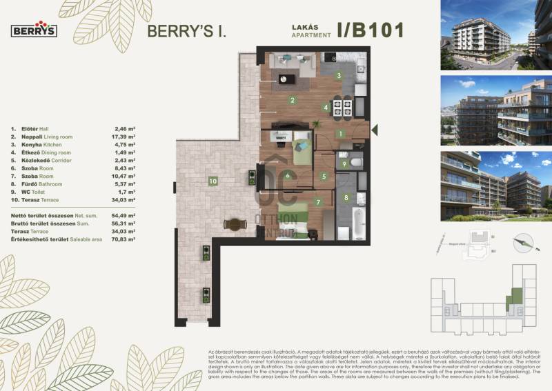 Projekt bemutatásaA XI. kerületi Bartók Béla úthoz közel épülő lakópark egy csendes, nyugodt környezetet kínál a város forgatagához közel. Az újbudai városrészben kialakított új lakónegyed kiváló közlekedési kapcsolatokkal rendelkezik. A zsákutcából nyíló elhelyezkedés biztosítja a forgalommentes, zavartalan lakókörnyezeti életet.A lakópark elhelyezkedése ideális azok számára, akik gyorsan és kényelmesen szeretnék elérni a város bármely pontját. A 4-es metró közelsége, az 1-2 perc sétatávolságra elérhető villamosok és a környéken közlekedő nappali és éjszakai autóbuszjáratok kiváló közlekedési lehetőséget biztosítanak. Az M1-es és M7-es autópályák közelsége, vagy a Kelenföld vasútállomás megkönnyíti az ország minden részébe, kiemelten a Balatonhoz és a Velencei tóhoz tervezett utazásokat.A legmodernebb mennyezeti hűtő- fűtő rendszernek köszönhetően alacsony fenntartási költségek várnak. A zöldtetők és az épület körüli zöldterületek nemcsak természetes hőszigetelést adnak, de a közösségi életet is támogatják.A gyönyörű kilátás nyugalma a városi nyüzsgés harmóniájával. A Berry’s minden lakásához tartozik loggia, erkély, vagy terasz!Várható műszaki átadás: 2027 vége