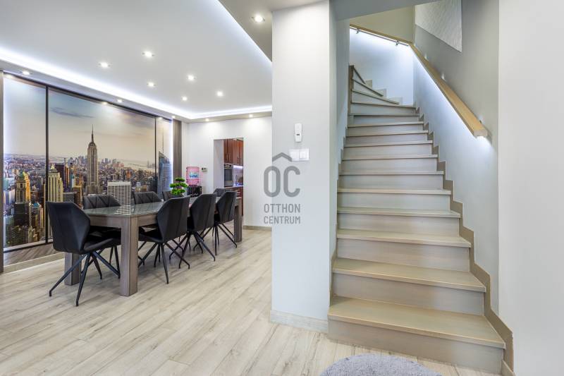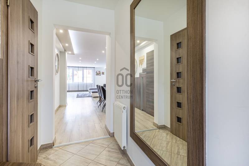 Zsombó szívében, négy lakásos társasházban kínálunk megvételre egy igényesen felújított, tágas terekkel rendelkező, belső kétszintes otthont.Az ingatlanhoz 1200 m²-es, két lakás által használt udvar tartozik, mely teljesen elkülönül a másik két lakástól. (Mindkét lakás megvásárolható)Ingatlan adatai:Méret: 120 m²•Földszint: tágas nappali étkezővel, konyha, kamra, mosdó•Emelet: 2 nagyméretű hálószoba, fürdőszoba mosdóval•Fűtés és meleg víz: gázkazán, radiátoros hőleadás•Klíma az emeleten•két oldalról fűtött lakás•hőszigetelt külső falak és födém, műanyag nyílászárók•Erkély•Az ingatlan teljes bútorzata a vételár részét képeziigényesen felújított, tágas terekkel rendelkezik kiváló helyszínt biztosítva nagyobb baráti/családi összejöveteleknek. Közös udvar és melléképületek jellemzői:A telek két bejárattal rendelkezik, amelyen három külön épületet találunk:• Három autó tárolására alkalmas garázs, plusz tároló helyiség, összesen 92m2 alapterülettel.•Melléképület és tároló közműbekötéssel rendelkezik, amely alkalmassá teszi akár további lakrész/ vendégház/ műhely kialakítására. Ennek folytatásaként találunk egy fedett teraszt, amely remek helyszínt biztosít szabadtéri kikapcsolódásra vagy baráti összejövetelek lebonyolításár. A terasz és az épület együttes mérete: 81,7 m2•A harmadik épületben egy háromállásos garázst találunk, két szerelőaknával. Víz gáz, villany elérhető ebben az épületben, így akár műhelyként is használható. Alapterülete: 75,6m2•Parkosítható, tágas kert, részben térkő borítással A melléképületek használata jelenleg közös, de igény esetén megosztható.Környék:A településen bölcsőde, óvoda, iskola, orvosi rendelő, gyógyszertár, éttermek és boltok találhatók, gyalogosan elérhető közelségben. Szeged 15 perc, M5 és M43 autópálya felhajtó: 10 perc autóval. Irányár: 75.000.000 FtTovábbi információért, megtekintésért hívjon bizalommal! 0670 454 2063Amennyiben nem tudom fogadni hívását, visszahívom!Irodánk teljes körű ügyintézéssel, energetikai tanúsítvánnyal, hitelügyintézéssel és ügyvédi háttérrel segíti az adásvételt.