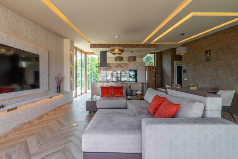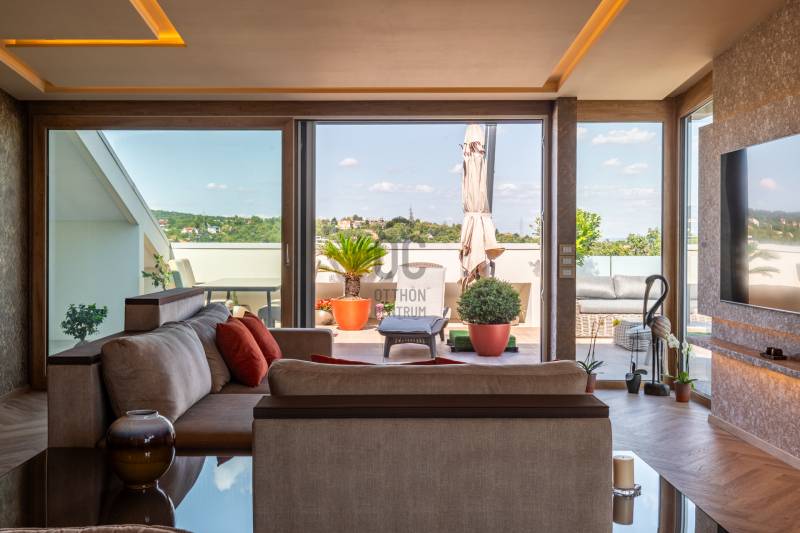 Egy ingatlan, amely újradefiniálja a prémium otthon fogalmát: háromszintes ikerház-rész lifttel, pazar panorámával és kiemelkedő minőséggel. Üdv itthon! RÖVID ÖSSZEFOGLALÓIII. kerület Testvérhegyen, Domoszló útján eladó ez a 2024-ben épült ikerház jellegű, jogilag társasházként nyilvántartott kivételesen magas minőségű lakás. A telek össz. területe 2030m2, melyre 2 épület, 2-2 lakással épült. A ház nyélen keresztül megközelíthető, így az utcától védett, csendes és privát. A kert megosztásra került, így a lakáshoz tartozik egy 111m2-es privát kertrész. A lakás alapterülete a garázsszinttel és a beépített terasszal együtt 206m2, melyhez tartozik egy 48m2-es tetőterasz csodás zöld panorámával, illetve a hálószobákból nyíló további 30m2 erkély. Három szinten 4 háló, ebből háromnak saját fürdője van, dupla állásos garázs elektromos töltővel. A beruházó magának tartotta meg, saját ízlése és igényszintje szerint fejezte be. Eddig jól hangzik? Alább részletesebben a további információk.LOKÁCIÓ – TESTVÉRHEGYA Domoszló út környezete Testvérhegy egyik legkedveltebb része – egy olyan kertvárosi szeglet, ahol a családok nyugalmat, biztonságot és minőségi életet találnak, miközben a főváros pezsgése is karnyújtásnyira van.Itt reggelenként friss levegő madárdal és hegyi panoráma látványa fogad, de iskola, bolt, kávézó vagy uszoda sincs több mint pár perc autózásra vagy sétára. A környék rendezett, gondozott, tele van családi házakkal, óriási fenyőkkel és meglepően jó közösséggel. A Domoszló út ugyan csendes, de közlekedési szempontból kiválóan elérhető: az M0-s gyorsforgalmi út, az Árpád-híd vagy épp Békásmegyer vasútállomása is rövid idő alatt elérhető autóval.Kiváló infrastruktúra – Minden, ami a család kényelméhez kellIskolák, óvodák: A környék kiemelkedő oktatási lehetőségeket kínál, köztük a népszerű Csillaghegyi Általános Iskola, a Bárczi Géza Általános Iskola vagy a Waldorf Óvoda és - Iskola is rövid autóútra található.A közeli Auchan, Decathlon és OBI áruházak mellett elérhető a Római-parti kis piac, a Lajos utcai termelői piac, vagy épp a helyiek egyik kedvence, a Csillag Center, ahol minden kéznél van – patika, posta, pékség és kávézó is. Több magánorvosi rendelő, gyermekorvos és a Szent Margit Kórház is gyorsan elérhető szükség esetén.A környék valódi ereje nemcsak a praktikum, hanem az életminőség:A Római-part 10 percen belül elérhető – bicikliúttal, éttermekkel, fagylaltozókkal és a Dunára néző stégekkel, ahol egy családi délután is nyaralásnak tűnik. A Duna-parti sétány, a Kossuth Lajos üdülőpart és a Fellini Római Kultúrbisztró a helyiek kedvenc találkozóhelyei – kulturális programokkal, élő zenével, naplementés borozásokkal. Csillaghegyi Árpád Forrásfürdő: teljesen felújított, egész évben működő wellness- és élményfürdő – beltéri medencékkel, szaunavilággal, családi élményzónával. Hármashatár-hegy vagy a közeli Kevély-erdő pedig tökéletesek egy hétvégi túrázáshoz, családi piknikhez vagy kutyasétáltatáshoz.A HÁZA ház friss, 2024-es átadással, gondos tervezés és kivitelezés eredményeként jött létre. Az ingatlan már az első pillantásra lenyűgöz: a karakteres, mégis elegáns homlokzat, a nagy üvegfelületek és az egyedi formavilág azonnal kiemelik a tömegből. Az épületben saját, privát lift található, amely megkönnyíti a mindennapokat – generációkon átívelő otthonná is válhat.A három szinten elosztott lakótér belsőépítészetileg is kivételes: letisztult, mégis meleg enteriőr, prémium burkolatok, időtálló anyaghasználat, és minden apró részletre kiterjedő figyelem jellemzi. A nappali tágas és világos, közvetlen teraszkapcsolattal – a panorámás kilátás pedig minden évszakban páratlan élményt nyújt. Magazinba illő en-suite hálószobái privát szférát biztosítanak a család minden tagja számára.Igény szerint szívesen küldök részletes műszaki leírást, amely tartalmazza a az épült általános jellemzőit, a épület-szerkezeti elemek leírását, műszaki specifikációkat, épületgépészeti és elektromos leírást, Smart Home csomag (Okos Otthon) leírást, stb.Parkolás - 2 állásos garázsban, elektromos töltővelKiknek ajánljuk?Ez az ingatlan tudatosan családok számára készült: akik értékelik a természet közelségét, a csendes, biztonságos környezetet, ugyanakkor nem szeretnének kompromisszumot kötni a városi kényelemmel és a minőséggel. A liftes kialakítás többgenerációs együttélést is lehetővé tesz, míg a belső tér rugalmassága alkalmazkodik a változó élethelyzetekhez is.Szívesen részt venne egy élményekkel teli, minden érzékszervre ható ingatlan bemutatón? Csak a megadott számot szükséges tárcsáznia hozzá!----------------------------------------------Díjmentes, bankfüggetlen hiteltanácsadással támogatjuk vevő ügyfeleinket a számukra legelőnyösebb finanszírozási döntések meghozatalában. Opcionálisan igénybe vehető kiegészítő szolgáltatásainkkal – mint ügyvédi közreműködés, energetikai tanúsítvány vagy villamos biztonsági felülvizsgálat – teljes körű szakmai támogatást nyújtunk az adásvétel folyamatának minden egyes lépésénél.----------------------------------------------A hirdetésben szereplő információk tájékoztató jellegűek. A tévedés és az árváltoztatás jogát fenntartjuk. Az esetleges elírásokért és technikai hibákért felelősséget nem vállalunk.