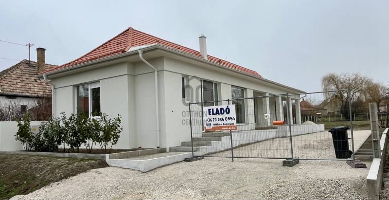 Pápa-Győr-Veszprém ölelése, Szentlászló a Bakony üdvöskéje!Vadászni, halászni, kirándulni és túrázni ? Itt mindent lehet és már nem is kell sokat várni !A település legszebb utcájában eladó egy ingatlan, ami akár lehet egy családi ház, egy hétvégi nyaraló, egy panzió és még sok minden más egy csodálatos élethez!Adott egy közel 1.000 nm-es telek és kiváló állapotú gondos kezek által felépített ház. Az idő sajna eltelt, más igények, elképzelések jöttek és a változás gyümölcse egy modern, a mai kornak, elvárásnak maximálisan megfelelő csodás otthon.A kivitelező előre gondoskodott, hogy az új tulajdonosnak már ne legyen gondja, a napelem előkészítéssel, elektromos autó töltéséhez szükséges kiépített vezetékekhez, és a H tarifás mérőhely kialakítására.Az építkezés során felhasznált anyagok minőségiek, a kivitelezés első osztályú.Ingatlanhoz tartozó helységek:- Előszoba: 3.54 nm- Wc: 2.43 nm- Nappali- étkező: 22.63 nm- Hálószoba : 15.94 nm- Fürdőszoba: 3.73 nm- Közlekedő: 7.73 nm- Konyha: 7.96 nm- Szoba: 9.69 nm- Fürdőszoba: 5.14 nm-Szoba. 13.35 nmValamint : 17 nm-es fedett és egy 32 nm-es nyitott terasz segít a kényelmes tér kihasználásban.Víz, villany, csatorna adott. a gázcsonk a telken belül található.Kiépítésre került egy ásott kút is bőséges vízhozammal. Jelenleg a fűtést- hűtést 2db. A++ klíma végzi, de a tervezett fűtés lehet fűtőszőnyeg vagy akár hőszivattyú !A vételi árba ingatlan beszámítása lehetséges.Műszaki tartalom :- Bitumenes aljzatszigetelés, 10+5 cm EPS hőszigetelés, önterülő esztrich beton aljzat- 38-as téglafalak, a válaszfalak is!- Creaton Róna vörös cserép- Karcolt RAL acéllemez fedés a tornác felett- RAL acéllemez esőcsatornák- 15 cm EPS homlokzati szigetelés- 3 rétegű műanyag ablakok- Hűtés - Fűtés 2 db. Haier klíma A++- 3 * 25 a villamosenergia-Schiedel kandallókémény a nappaliban, külső levegő bevezetéssel.Hitelre van szüksége? Tudunk segíteni!Az Otthon Centrum az ország egyik legnagyobb és legmegbízhatóbb hitelközvetítőjeként, teljes körű és díjmentes hitel ügyintézéssel, biztosításkötéssel áll rendelkezésére!Kérje személyre szabott ajánlatunkat Kollégáinktól!Ez az ingatlan a \"Felező csomag\" megbízási portfólióhoz tartozik. Részletek az Otthon Centrum weboldalán.