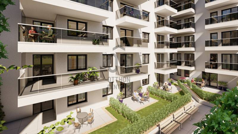 Az ingatlan a harmadik emeleten található. Kertre néző.Projekt bemutatásaA belváros egyik legjobb részén a Blaha Lujza tér szomszédságában nappali 1 hálós és nappali + 2 hálós, modern, energiatakarékos lakások.A szomszéd épület alacsony, így a 4. és 5. emeleti belső, kertre néző lakások ablakaiból és teraszáról a kilátást semmi nem gátolja. A 6. emeletről városi panoráma + oldalt a Rózsák terén található templom tornyai láthatók.A 7. emeleti lakásból pazar városi panoráma és részben a budai hegyek látványa tárul elénk.A földszinti lakásokhoz a teraszon kívül saját kert tartozik.Beállók opcionálisan vásárolhatók az épület melletti parkolóházban. A két épület a pinceszinten összenyitásra kerül.Nagy méretű beálló, 5,5x3 méter: 15 millió FtNormál beálló, 2,5x 5 méter: 13 millió FtCsökkentett méretű beálló, 11 millió FtTárolók 600e Ft/m2-es áron, 5 m2-13m2 méretbenMűszaki átadás: 2026.01.31.Szakaszos fizetési ütemezés. 30% -30% - 30% - 10%.A beruházó 25 éve markáns szereplője az ingatlanpiacnak. Magas minőségű kivitelezés, több szakmai díjjal elismert fejlesztő.Fűtés-hűtés rendszerA hűtés fűtést és melegvíz ellátást hőszivattyús rendszer biztosítja.A Fűtés hűtés rendszer csövei a mennyezetben és padlóban futnak.A hűtés és fűtés szabályozása lakásonként a tulajdonos által (akár telefonról is) vezérelhető a lakó helyiségekben elhelyezett termosztáttal történik.A felhasznált hőenergia aránya költségosztással az átfolyt vízmennyiség alapján mérhető.