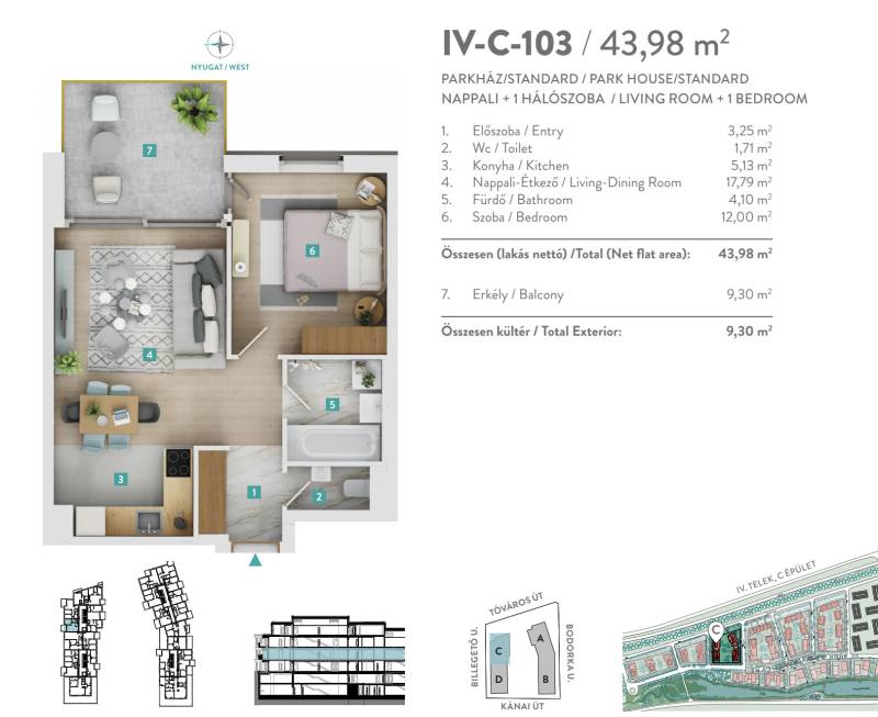 Prémium minőségű, azonnal költözhető, nagy teraszos lakás a Lake 11-benKépzeld el, hogy minden reggel a saját teraszodon kezdődik a napod, ahol a fák között átszűrődik a napfény, és a Kánai-tó nyugalma ölel körül. Ez a lakás egyszerre adja meg a modern városi élet kényelmét és a természet közelségét.A Lake 11 Budapest XI. kerületének új ékköve, Kőérberek zöldövezetében, közvetlenül a tó partján. Itt a csendes, parkos környezet és a belváros gyors elérhetősége kéz a kézben jár.LAKÁSA 44,12 m²-es, nappali + hálószobás otthon nyugati tájolású, így a teraszról (9,23 m²) esténként a naplementében gyönyörködhetsz. Vadonatúj, első tulajdonostól, prémium kivitelezéssel és teljes garanciával.A gépesített konyha elegáns és praktikus: sütő, főzőlap, mosogatógép, hűtő és elszívó is a része. A háromrétegű alumínium nyílászárók és a nappali tolóajtaja beengedik a fényt, a beépített árnyékolás és az okosotthon-rendszer pedig modern kényelmet ad.A lakáshoz igény esetén saját tároló 2,78 m2 (+2,5 M Ft ) és 2 db felszíni parkoló (+3,5 M Ft/db) is vásárolható.ÉPÜLETA geotermikus energiával működő mennyezeti hűtés-fűtés rendszere nemcsak környezetbarát, hanem A+ energiabesorolást is biztosít, így a fenntartási költségek alacsonyak. A közös terek igényes kialakítása és a biztonsági rendszer tovább növeli a lakás értékét.LAKÓKÖRNYEZET ÉS SZOLGÁLTATÁSOKA közelben fitneszterem, uszoda, strand, fitneszterem, tenisz- és squashpálya, kerékpárút található: Legyen szó egy fárasztó nap utáni lazításról vagy egy hétvégi kikapcsolódásról, minden adott, hogy feltöltődj — mindez egy lépésre az otthonodtól. A Kánai-tó revitalizációja már idén elkezdődik: Belső parkok, zöldterületek, árnyas pihenőpontok létesítése szolgálja majd az itt élők kikapcsolódását. A humán infrastruktúra fejlesztése érdekében körzeti felnőtt és gyermekorvosi rendelő, valamint magánüzemeltetésű óvoda létesül. KIVÁLÓ ELHELYEZKEDÉSItt élve nem kell választanod a csendes zöldövezet és a városi élet között. A 41-es villamos két megállója is a lakópark közelében van, így kényelmesen eljuthatsz akár a belvárosig is. A 187-es busz mindössze 15 perc alatt visz a Kelenföldi Metróállomásra, ahonnan már a város bármely pontja gyorsan elérhető. Autóval pedig pár perc alatt felhajthatsz az M1, M7 vagy M0 autópályákra, és percek alatt az Etele Plázánál találod magad.Ha pedig kerékpárral indulnál útnak, a Kánai-tó partján halad az EuroVelo 14 nemzetközi bicikliút, amely egészen a Balatonig vezet – tökéletes hétvégi kirándulásokhoz, sportoláshoz vagy egy könnyed délutáni tekeréshez.Befektetésnek is tökéletes választás: a dinamikusan fejlődő környék és a magas bérleti kereslet hosszú távon is garantálja az értékállóságot.Ne csak álmodozz róla – éld át, milyen, amikor a természet és a városi élet tökéletes harmóniában van.----------------------------------------------Díjmentes, bankfüggetlen hiteltanácsadással támogatjuk vevő ügyfeleinket a számukra legelőnyösebb finanszírozási döntések meghozatalában. Opcionálisan igénybe vehető kiegészítő szolgáltatásainkkal – mint ügyvédi közreműködés, energetikai tanúsítvány vagy villamos biztonsági felülvizsgálat – teljes körű szakmai támogatást nyújtunk az adásvétel folyamatának minden egyes lépésénél.----------------------------------------------A hirdetésben szereplő információk tájékoztató jellegűek. A tévedés és az árváltoztatás jogát fenntartjuk. Az esetleges elírásokért és technikai hibákért felelősséget nem vállalunk.