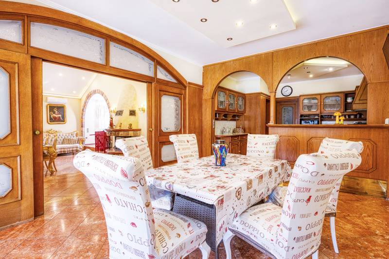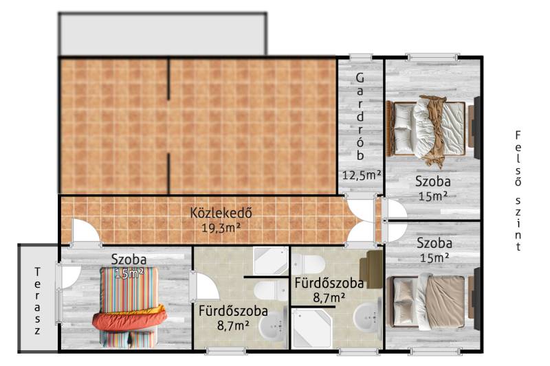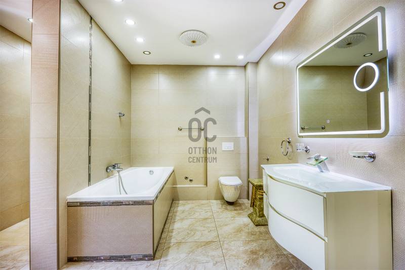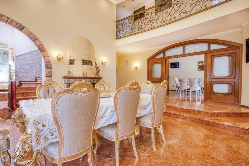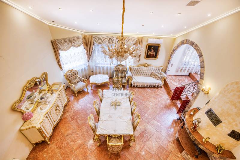 A 810 m2-es telken található, 450 m2-es, belső kétszintes, kiváló elosztású családi ház remek választás nagycsaládosoknak vagy akár kétgenerációs otthonnak.Az ingatlanba belépve tágas előszoba érkezünk mindennek van helye innen nyílik egy balra egy hálószoba, és hatalmas fürdőszoba.Jobbra található lakás szíve, egy csodálatosan elegáns nappali, ahol a 5 méteres, a belmagasság kandallóval hatalmas térrel.A konyha és az étkező 28 nm-es.A felső szinten 3 hálószoba 2 fürdőszoba és egy gardróbkerült kialakításra.