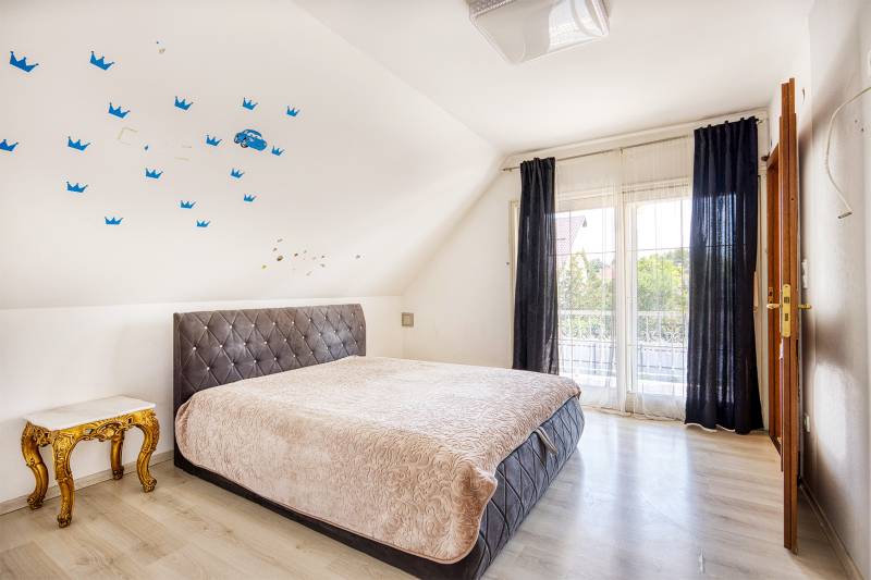Főbb jellemzők:- 4 tágas szoba, - 1 gardrób szoba- 3 fürdőszoba,- konyha, speiz, - Fedett terasz az udvar felé, erkély kertre nyílóan- Központi, gázcirkós fűtés, minden helyiségben padlófűtés- Törölközőszárítós radiátorok a fürdőszobákban- Klímaberendezés modern, energiatakarékos hűtéshez- Riasztórendszer kiépítve- Körbejárható ház, tágas udvar, automata öntözőrendszerrel nagy kert- 3 autós, tágas garázs - Nyitott terasz & medenceA ház műszakilag és építészetileg is jó állapotú, minimális átalakítással akár két önálló lakásként is használható.Gyors időpont-egyeztetés lehetséges személyes megtekintéshez, főként napközben, világos órákban ajánlott.További információért kérem, vegye fel velem a kapcsolatot üzenetben vagy telefonon!