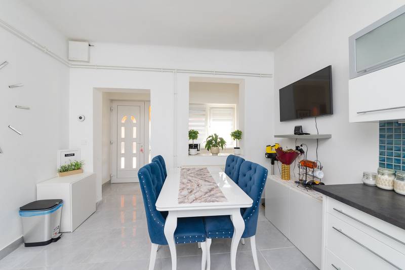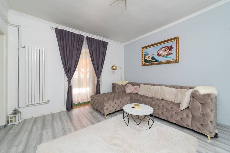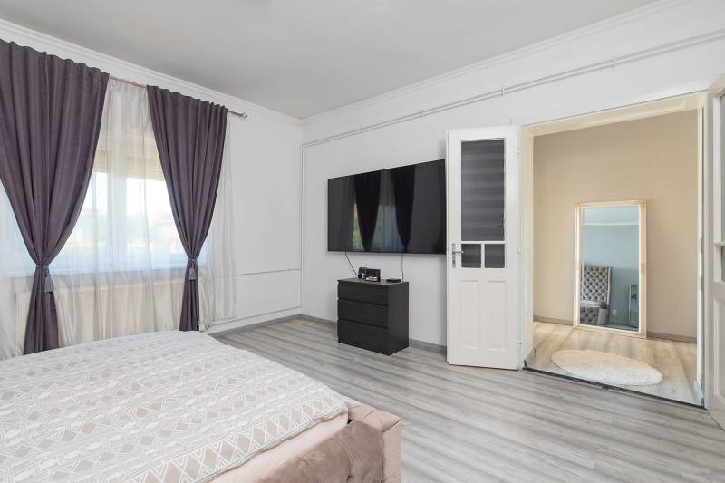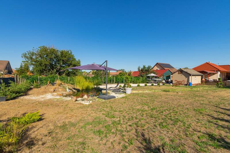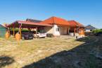 Dányban kínálunk megvásárlásra egy gyönyörűen felújított, földszintes önálló családi házat 1230 nm-es telekkel, kerti tóval, sütögetővel, hatalmas fedett terasszal, két autó számára fedett beállóval. A ház az utóbbi években műszakilag és esztétikailag fel lett újítva, komplett tető csere 2024-ben, fűtés korszerűsítés (kondenzációs kazán), elektromos hálózat, vízcsövek,. lefolyó csövek is cserélve lettek. Továbbá a nyílászárók, konyha, fürdőszoba, szaniterek és burkolatok is megújultak. Modern, esztétikus belső design jellemzi a házat. A nagy, fedett teraszról nyílik a bejárat, itt található egy előszoba pakolási lehetőséggel, majd a modern bútorral és gépekkel felszerelt konyha-étkező, kamra (alatta pince), egy szép zuhanyzós és kádas fürdőszoba, nagy hálószoba, teraszkapcsolatos nappali és még egy hálószoba, mely befejezésre vár (festés és burkolás van hátra, igény esetén a tulajdonos befejezi külön megállapodás alapján). A ház első része vegyes falazat, szigetelt alappal, a további részek tégla építésűek. A tégla részeken 20 cm dryvit szigetelés van, A tetőt Tondach cserép fedi. A teljes bútorzat a vételár részét képezi, tehermentes ingatlan, rövid időn belül birtokba vehető.