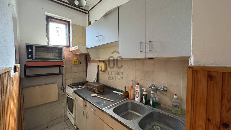 Eladásra kínálunk egy felújítandó 4 szobás családi házat Rákoscsabán. Az ingatlan egy 1500 nm-es keskeny telken található, melynek végében a Rákos patak csörgedezik. A főépület a 60-as évek végén épült, melyhez további részeket építettek a 70-es években.A házban a nyílászárókat műanyagra cserélték, azonban további felújításra nem került sor. A fűtést gáz kazán, vegyes kazán és cserépkályha is biztosítja.A lakóházon kívül garázs és számos melléképület található a telken. Az öntözéshez saját fúrt kút is rendelkezésre áll.A telek kivételes adottságai miatt építési telket keresők számára is megfelelő az ingatlan.