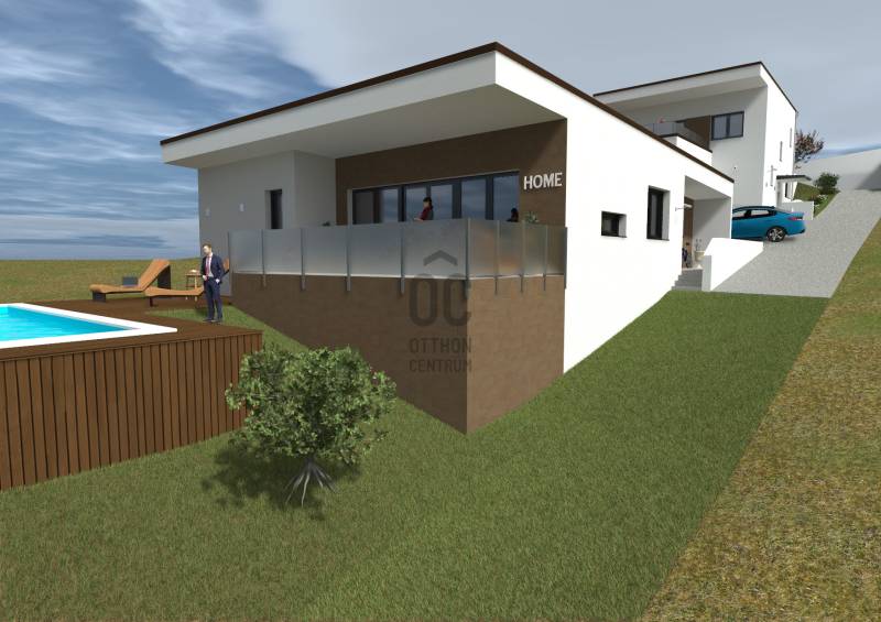 *Rendezett környezetben*ideális 1100m2-es telken *Nettó 157m2 alapterületű *Új építésű*Nappali + 4 szobás*PanorámásCsaládi ház várja új tulajdonosát! Prémium műszaki megoldások és anyaghasználat:- Falazat: POROTHERM 30 tégla és POROTHERM 10 válaszfallapok- Födémszerkezet: monolit vasbeton szerkezetű födém- Bádogos szerkezetek: rejtett ereszcsatornák, lefolyó; falsík bádogozások- Szigetelés: 20 cm EPS hőszigetelés homlokzati felületeken, lapostetőkön 30 cm vastagságú Austrotherm AT-N100 szigetelés.- Homlokzati felületképzés: (Baumit szilikon) finomszemcsés nemesvakolat, törtfehér színben.- Lapostető: PVC vízszigetelés, zöldtető- Nyílászárók: műanyag szerkezetű ablakok, teraszajtók és bejárati ajtó háromrétegű hőszigetelő üvegezéssel, külső oldalon szürke színben alumínium borítással- Az ikerházrész külön bejárattal lesz elérhető.További extrák:- rejtett tokos redőnyök elektromos mozgatással- tetőteraszokon, teraszokon üvegkorlát készül- fűtés és melegvízkészítés hőszivattyúval történik, padlófűtéssel és mennyezet hűtéssel- 8*4 m medence szerkezet gépészet, fólia és burkolat nélkül- telekrész térburkolása 6 cm vastag kiselemes térkő burkolattal (parkolót megközelítő útvonal)Jelenleg az ingatlanon az alapozási munkálatok zajlanak.Fűtéskész műszaki tartalomnak NEM RÉSZE az alábbi munkák elvégzése:- belső padló-, falburkolatok beszerzése és kivitelezése- belső festési előkészítési és festési munkák elvégzése- belső ajtók beszerzése és elhelyezése- gépészeti berendezések beszerzése és elhelyezése (kivéve hőszivattyús rendszer)- gépészeti szaniter berendezések beszerzése és elhelyezése- villamos szerelvények beszerzése és elhelyezése- konyhabútor gyártása, beszerzése, elhelyezése- egyéb bútorozási munkák elvégzése- lépcsőburkolat, lépcső korlát gyártása, beszerzése és kivitelezése (kivéve teraszokon üvegkorlát)- terasz burkolat beszerzése, kivitelezése- saját használatú kerten belüli kertépítési munkák, térburkolásFenti munkákat vállalkozó csak a megrendelő(k)kel kötött külön kivitelezési szerződés megkötése esetén végzi el!Hívjon a hét bármely napján, nehogy lemaradjon!Hitelre van szüksége?Az Otthon Centrum az ország egyik legnagyobb és legmegbízhatóbb hitelközvetítőjeként,teljes körű és díjmentes hitelügyintézéssel, biztosításkötéssel áll rendelkezésére!Kérje személyre szabott ajánlatunkat Kollégáinktól!