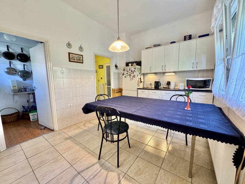 Egy elismert építész saját családjának álmodta meg.Nem akármilyen házról van szó: olyan szakember otthonáról, aki a kerületben számos lakóház és lakás terveit jegyzi. Amikor egy építész magának tervez, nem köt kompromisszumot sem anyagban, sem szerkezetben – ez a ház ennek a gondosságnak a kézzel fogható eredménye.A jelenlegi elrendezés szerint 6 szoba áll rendelkezésre ,de a terek kialakításának köszönhetően könnyedén bővíthető akár 9 szobává is .A téglaépítésű, zsindelytetős ház két szintje ideális választás kétgenerációs együttélésre: külön lakrészek, mégis egy közös otthon. A nagyszülők, szülők és gyerekek úgy élhetnek együtt, hogy mindenkinek megmarad a saját élettere.A belső terek világosak és barátságosak: a nagy könyvespolcos nappali igazi központja a háznak, a szobák napfényesek és jól bútorozhatók. A két szinten külön konyha és több fürdőszoba is helyet kapott, így a családtagok kényelmesen, egymást nem zavarva élhetik a mindennapokat.Műszaki tartalom:•Gáz cirkó fűtés puffer tartállyal kombinálva•Alternatív fűtés vegyes tüzelésű kazánnal•Réz villanyvezetékek az emeleti szinten•Ipari áram a garázsban – műhelyhez, gépekhez vagy elektromos autó töltéséhez ideális•Két klíma a nyári komfortértAz udvar térkövezett, a dupla garázsban két autó fér el, a szabadban pedig további kettő parkolhat. A kert nemcsak tágas, de igazán szerethető is: virágos ablakok, zöld fák, bokrok, és egy öreg diófa, amely árnyékot ad a nyári napokon, s köré gyűjti a családot, ahogy egy igazi otthonhoz illik. A fedett kerti konyha hosszú asztallal és sütővel pedig tökéletes helyszíne a grilleknek és baráti összejöveteleknek.A 1009 m²-es telek szabad teret ad a fantáziának – játszótér, konyhakert, medence, vagy egyszerűen csak egy árnyékos pihenőkert is könnyedén kialakítható rajta.Ez a ház többről szól, mint falakról és tetőről. Ez egy hely, ahol a családi történetek gyökeret vernek – ahogy a kert diófája is teszi, évről évre erősebben.