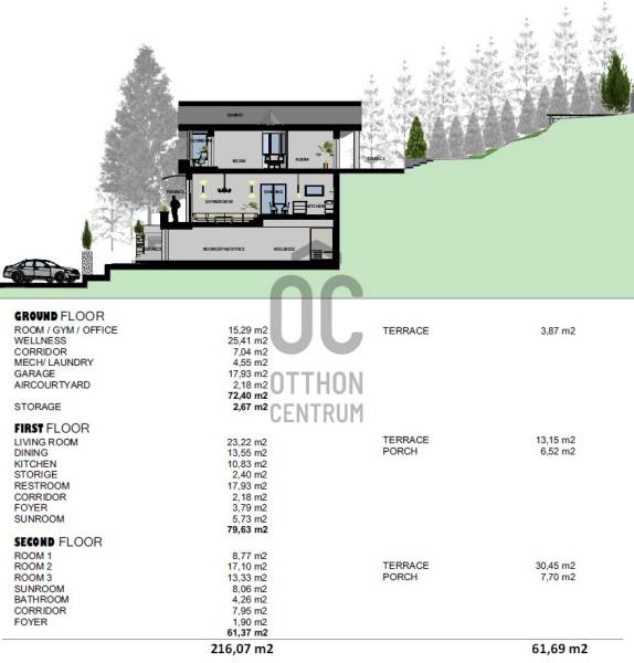 Képzeld el, hogy minden reggel a budai hegyek panorámájában gyönyörködsz, miközben a nappalid hatalmas üvegfelületein át beárad a napfény. Ez a háromszintes, 217 m² nettó / 279 m² bruttó alapterületű, teljeskörűen felújított prémium ikerház a II. kerület legnyugodtabb, legbiztonságosabb kertvárosában, Remetekertvárosban várja új tulajdonosát — ideális választás nagycsaládosoknak, akik a tágas tereket és a luxuskörnyezetet keresik.Kiemelt előnyök:•535 m²-es telek•5 szoba + 3 fürdőszoba + wellness tér•Több mint 50 m²-es egybenyitott nappali–étkező–konyha kétirányú teraszkapcsolattal•Minden szintről lenyűgöző panoráma•Zsákutca végi elhelyezkedés — teljes nyugalom és biztonság•Igény esetén medence vagy jakuzzi kialakítható a felső wellness teraszon•Szauna tér, ami edzőteremként is hasznosíthatóHelyiségelosztás:Földszint: garázs, egy szoba (szülői lakosztály/wellness), fürdő, WC, szauna, tároló1.emelet: előszoba, nappali–konyha–étkező egy légtérben (50 m²+), kamra, fürdő, külön WC, télikert2.emelet: 3 hálószoba, fürdő+WC, közlekedő, teraszkapcsolatParkolás:•Garázs•2 nyitott beállóhelyMűszaki és komfort extrák:•Hőszigetelt, 3 rétegű üvegezés – kiváló energetika•Napkollektoros melegvíz-ellátás•Gépesített, prémium konyha a vételárban•Szintenként vizes helyiség•Átgondolt, családbarát alaprajzEz az ingatlan nem csupán egy ház, hanem egy élettér, ahol minden adott egy nyugodt, biztonságos és mégis reprezentatív élethez. Tökéletes választás, ha többgenerációs családod van, vagy egyszerűen csak szereted a nagyvonalú tereket és a természetközeli luxust.Hívj még ma, és nézd meg, milyen, amikor az „álomotthon” szó jelentést nyer.Hitelezési Szakértőnk egyetlen lépésben bemutatja Önnek az összes pénzintézet ajánlatát - így elkerülheti a hosszadalmas és felesleges banki látogatásokat – gyorsan, hatékonyan és a legjobb döntést biztosítva Önnek.Ez az ingatlan a \"Hűség csomag\" megbízási portfólióhoz tartozik. Részletek az Otthon Centrum weboldalán.